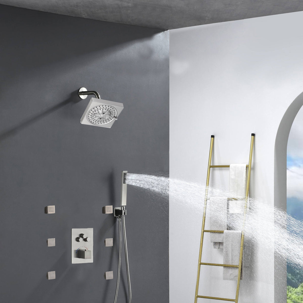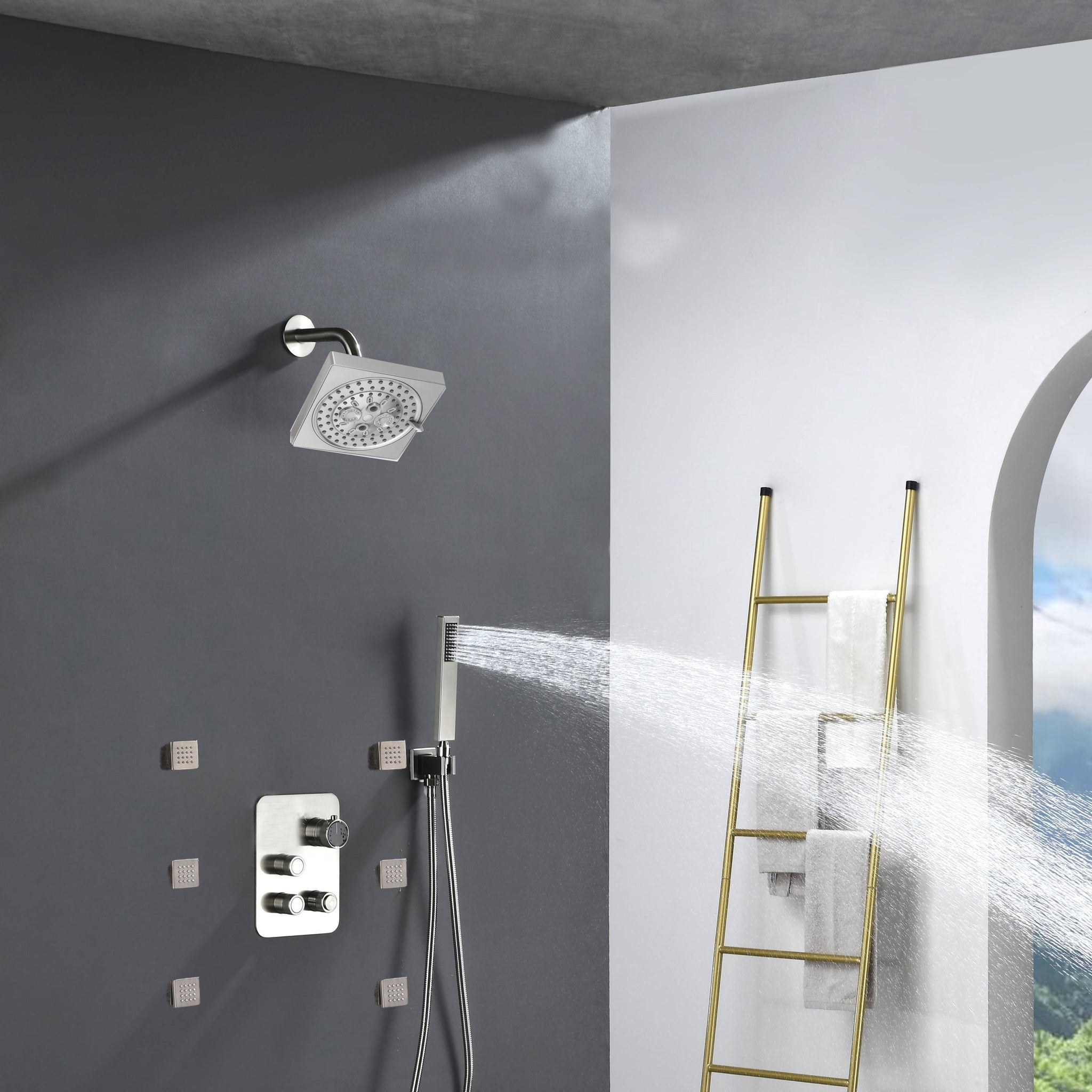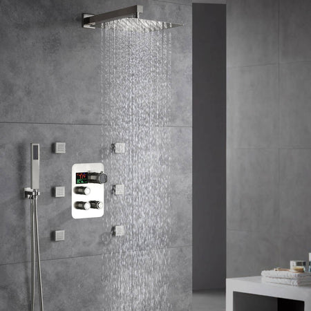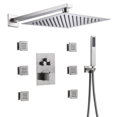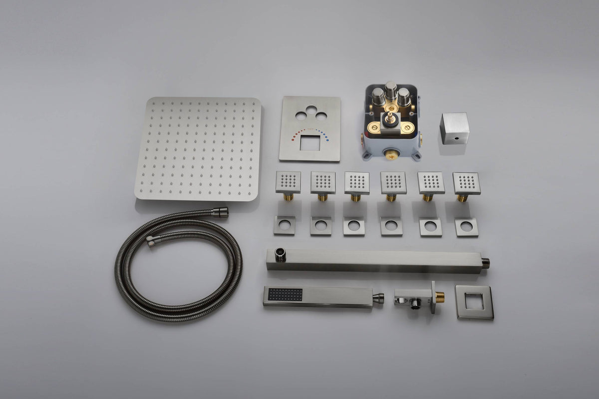 12 inch or 16 inchBrushed Nickel Wall Mount 3 way Thermostatic valve that each function run at the same time and separately