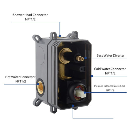 - shower valve: two way, brass, ABS box. NPT1/2 inch inlets and outlets