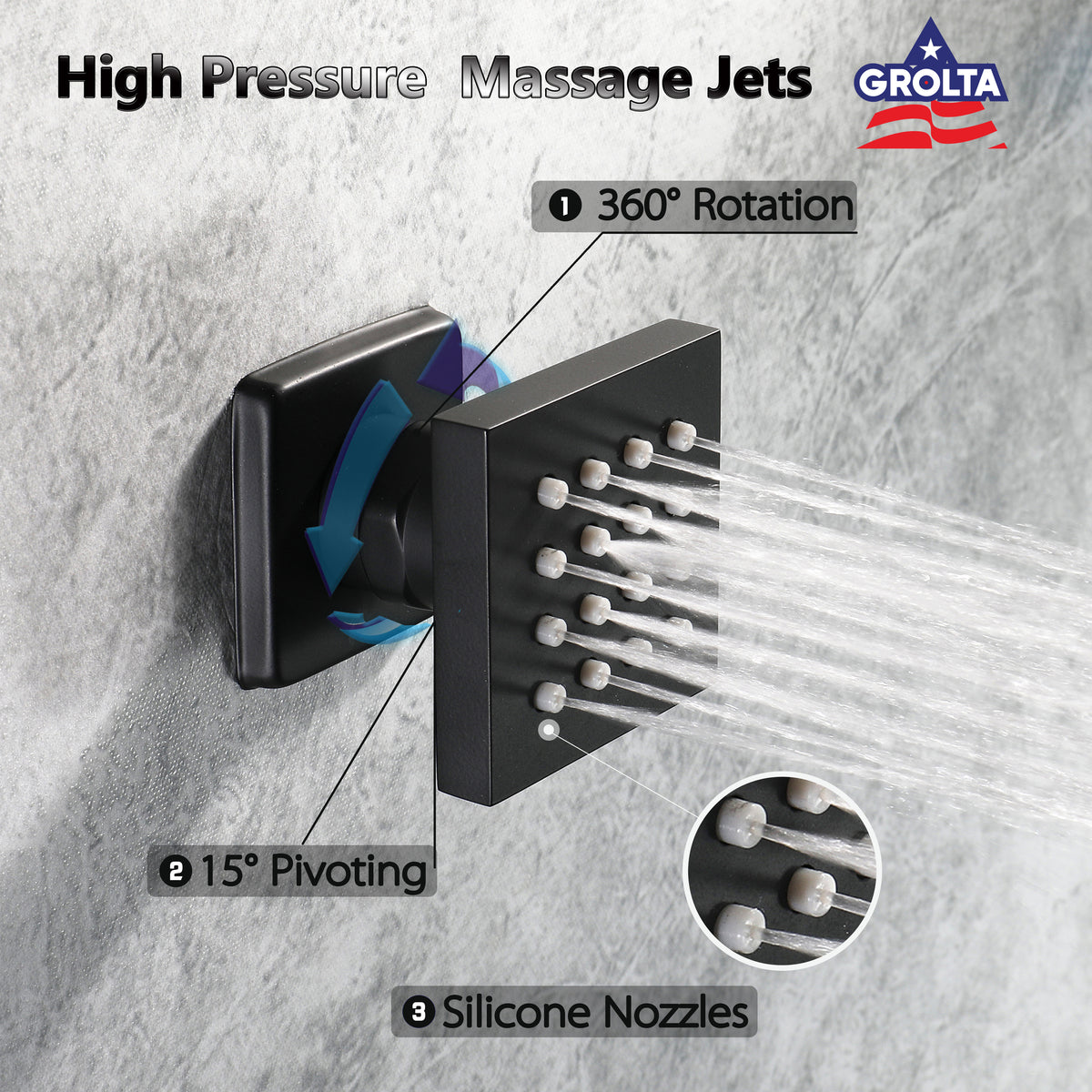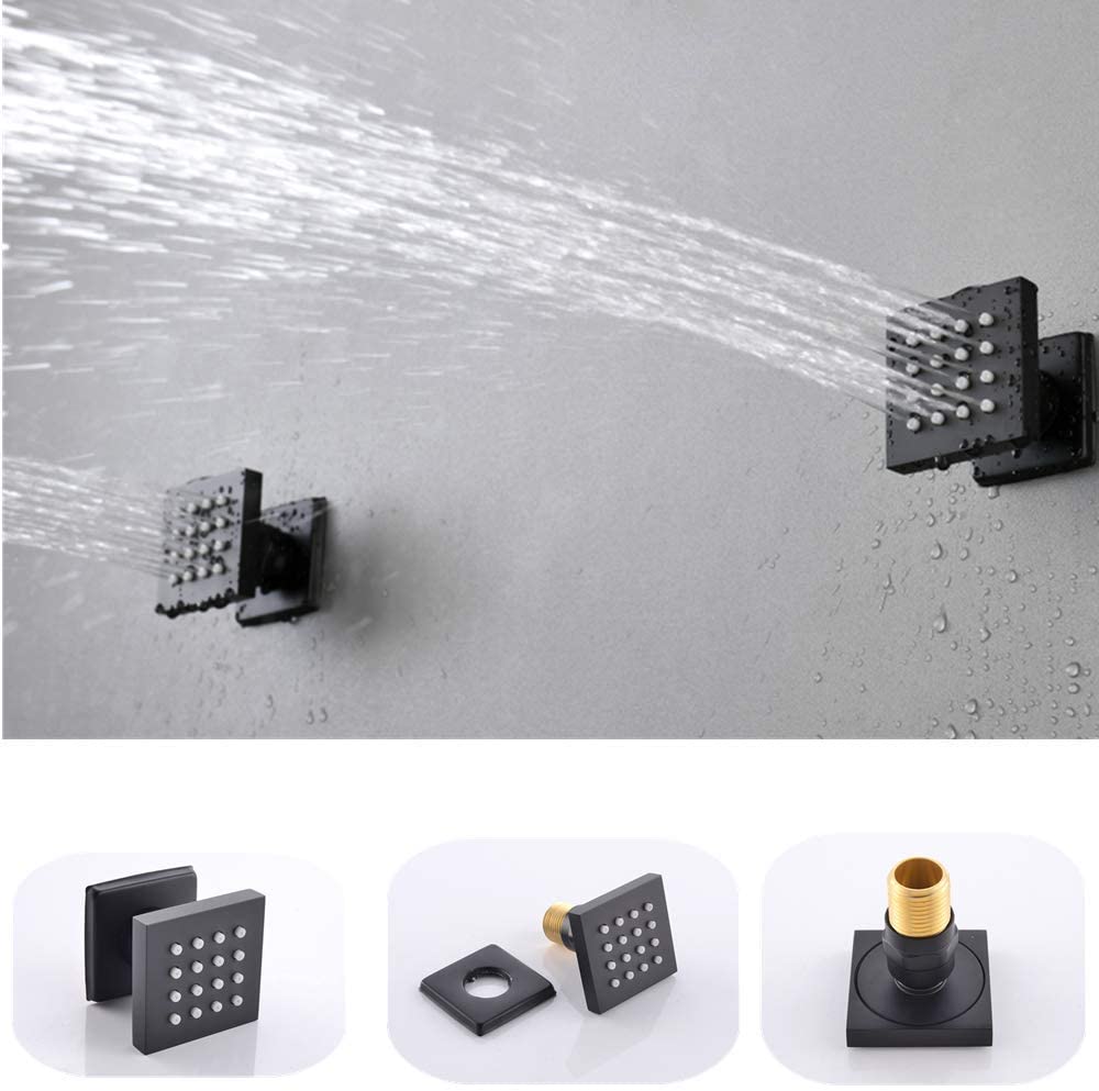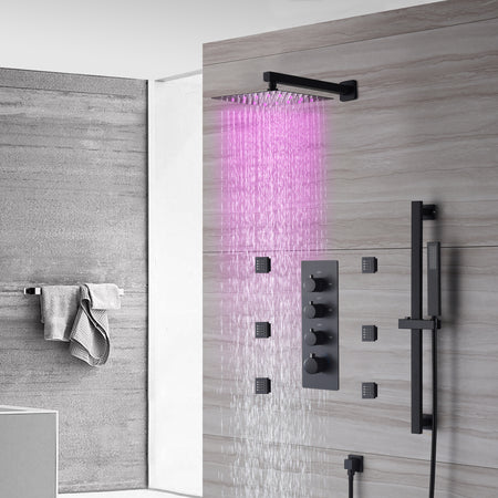 12 inch or 16 inch LED wall mounted shower head matte black 3 way thermostatic shower faucet with body jets and sliding bar
