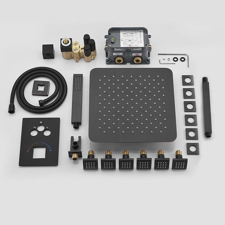 - ?High-quality Material: ORB fixed shower head, a brass handheld holder, 8” shower arm, 59” shower hose, 3 way thermostatic valve mixer,6pcs brass body jets, 1 brass handheld shower