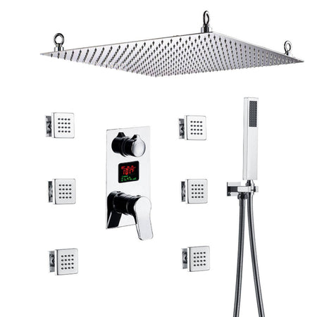 Fahrenheit temperature Digital display 20inch Non led Rain Shower System with Handheld Shower & 6 Body Sprays in Polished Chrome