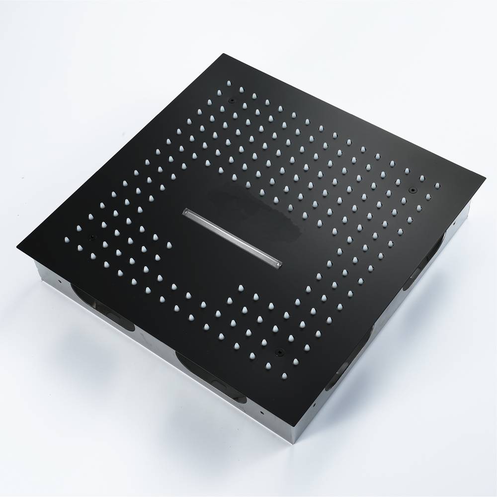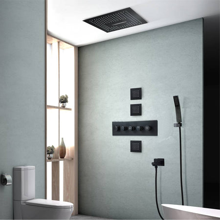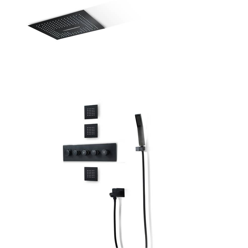16'' Matt Black Flushed in Bluetooth Music Waterfall Rainfall LED Shower Thermostatic Shower Faucet Set with 4 Inch Body Jet