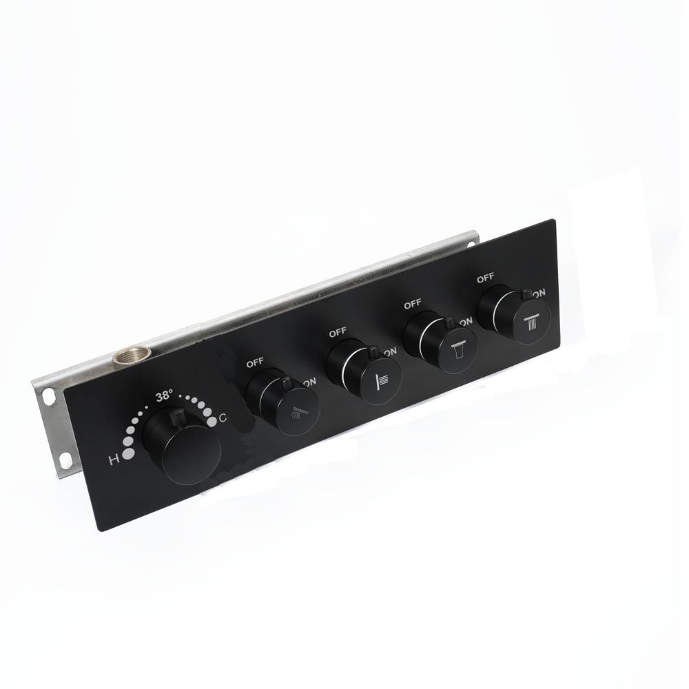 Brass handheld shower, 59inch shower hose,4 function brass thermostatic valve that each functions work at the same time and seperately. 3pcs big brass body jets.