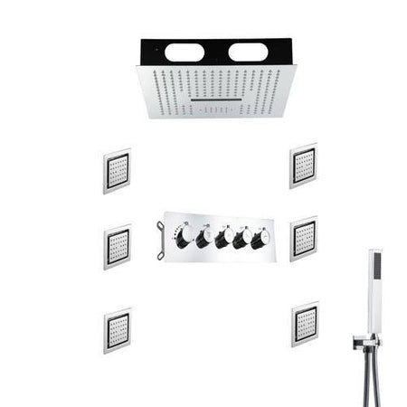 16inch 64 colors LED Chrome Flushed in 4 Way Thermostatic Shower Faucet with 4inch Body Jet