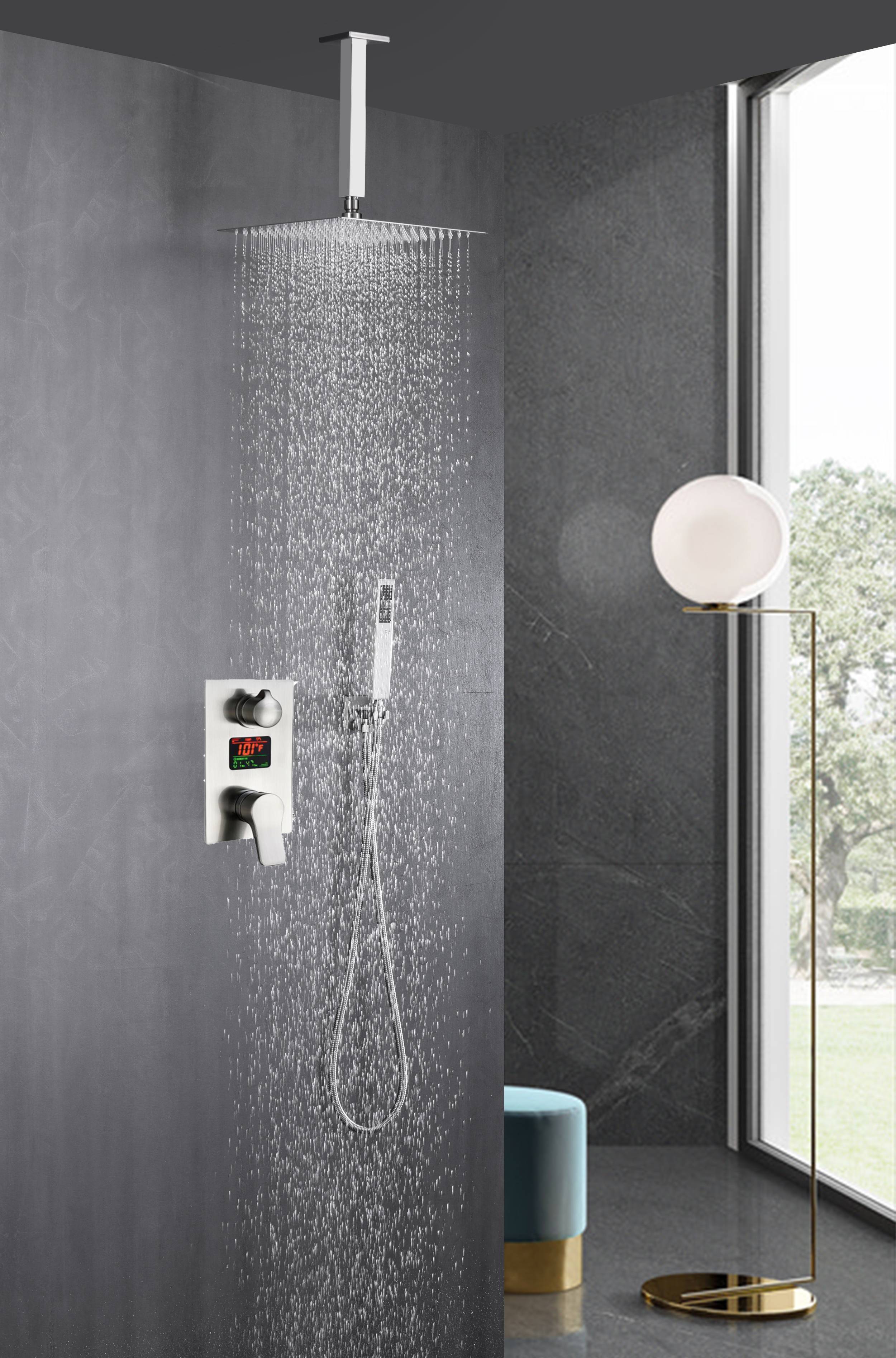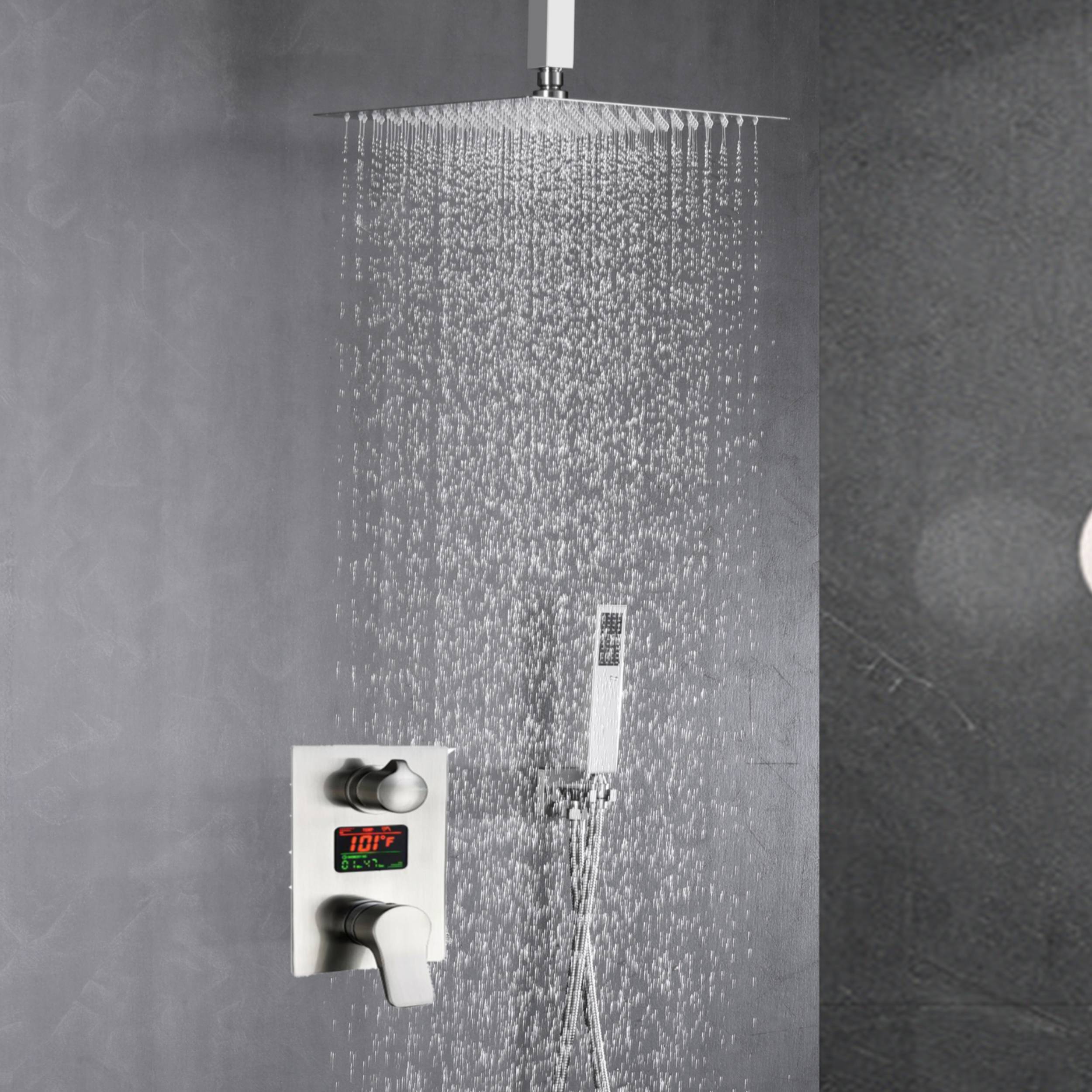 16inch ceiling mount rainfall showers 2 way digital display rough in valve with trim