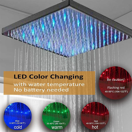 Rainfall shower head Color Changing with Water Temperature,no need battery