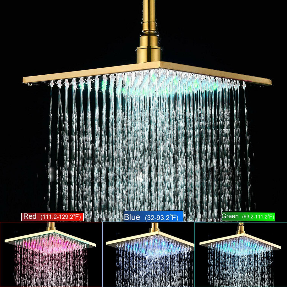 12 inch or 16 inch LED Polished gold Ceiling mount 3 way Thermostatic Shower valve system that each function run all together and separately