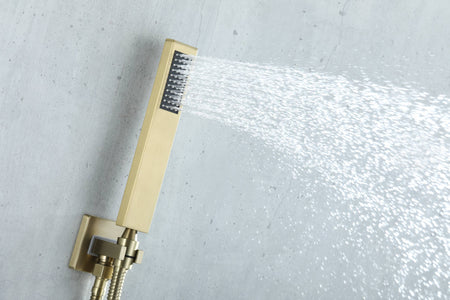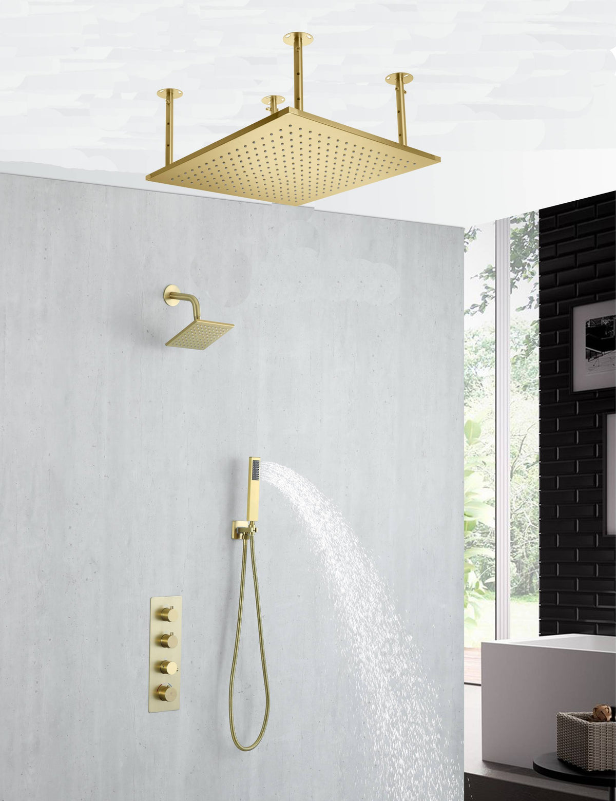 20 inch ceiling mount Brushed gold 3 way thermostatic shower faucet with high pressure 6 '' head and handle sprayer