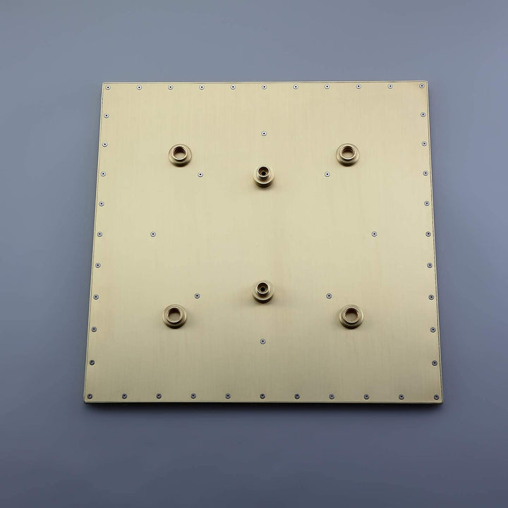 20 inch ceiling mount Brushed gold 4 way digital display thermostatic shower faucet with high pressure 6 '' head and 4 inch body jets and handle sprayer