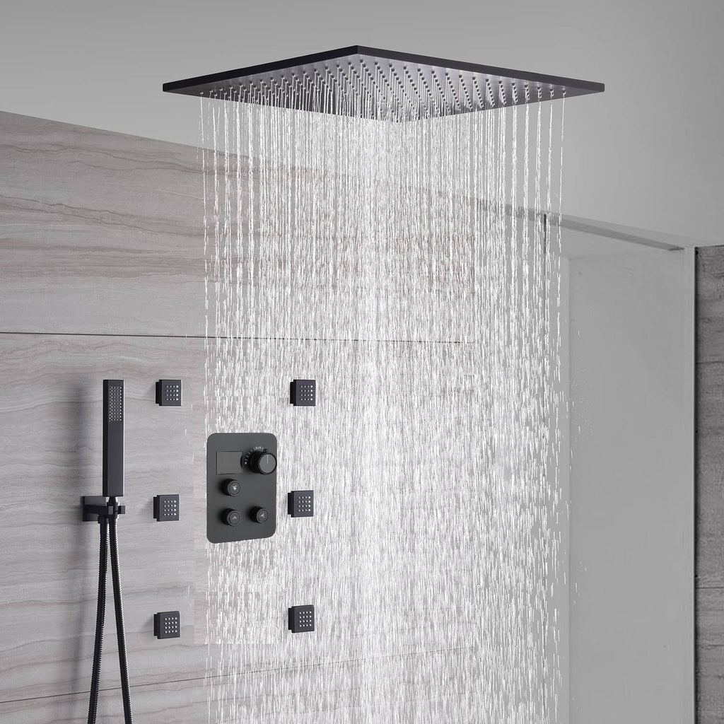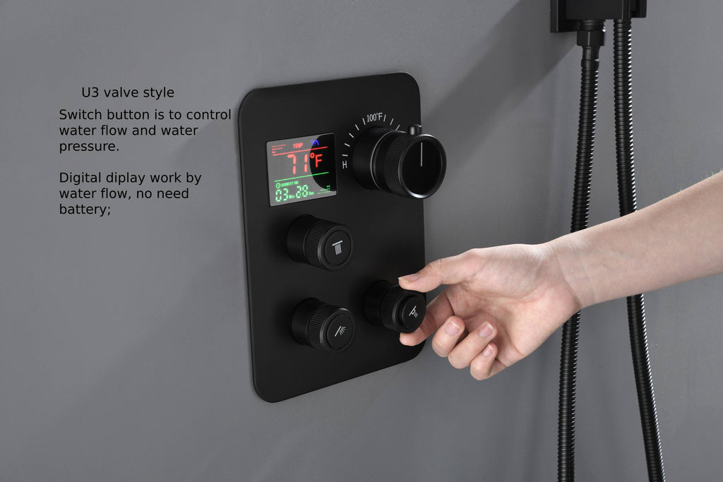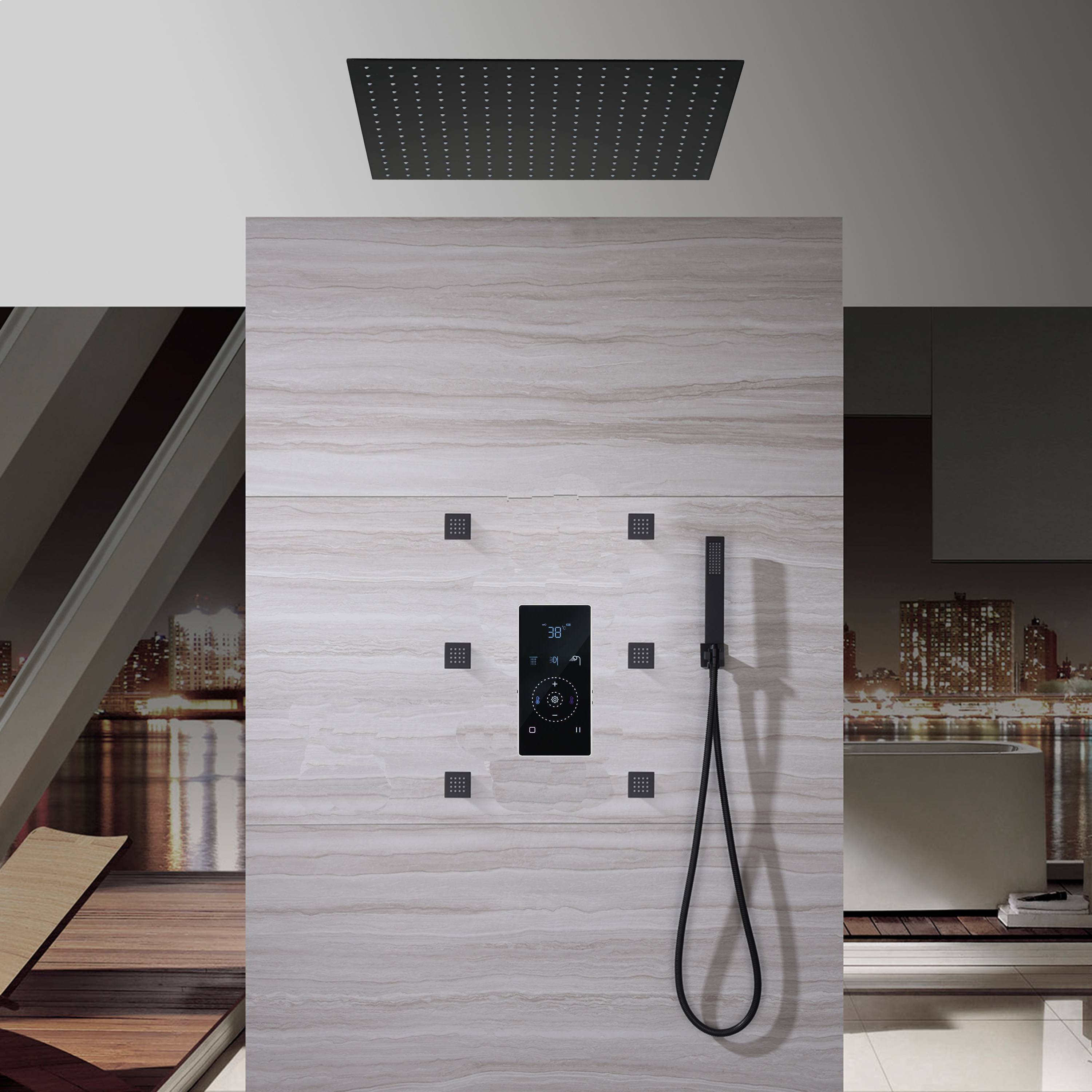 20-inch or 24 inch LED light ceiling mounted Matte Black 3 way touch-panel valve with a big water flow adjustable fixture