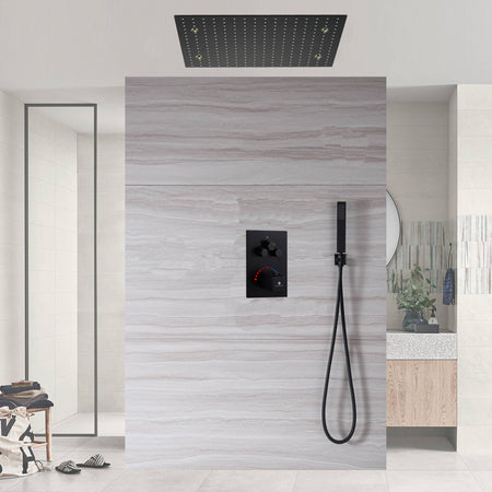 20 Inch LED Mist rainfall ceiling mounted Matte Black 3 way Thermostatic Shower system