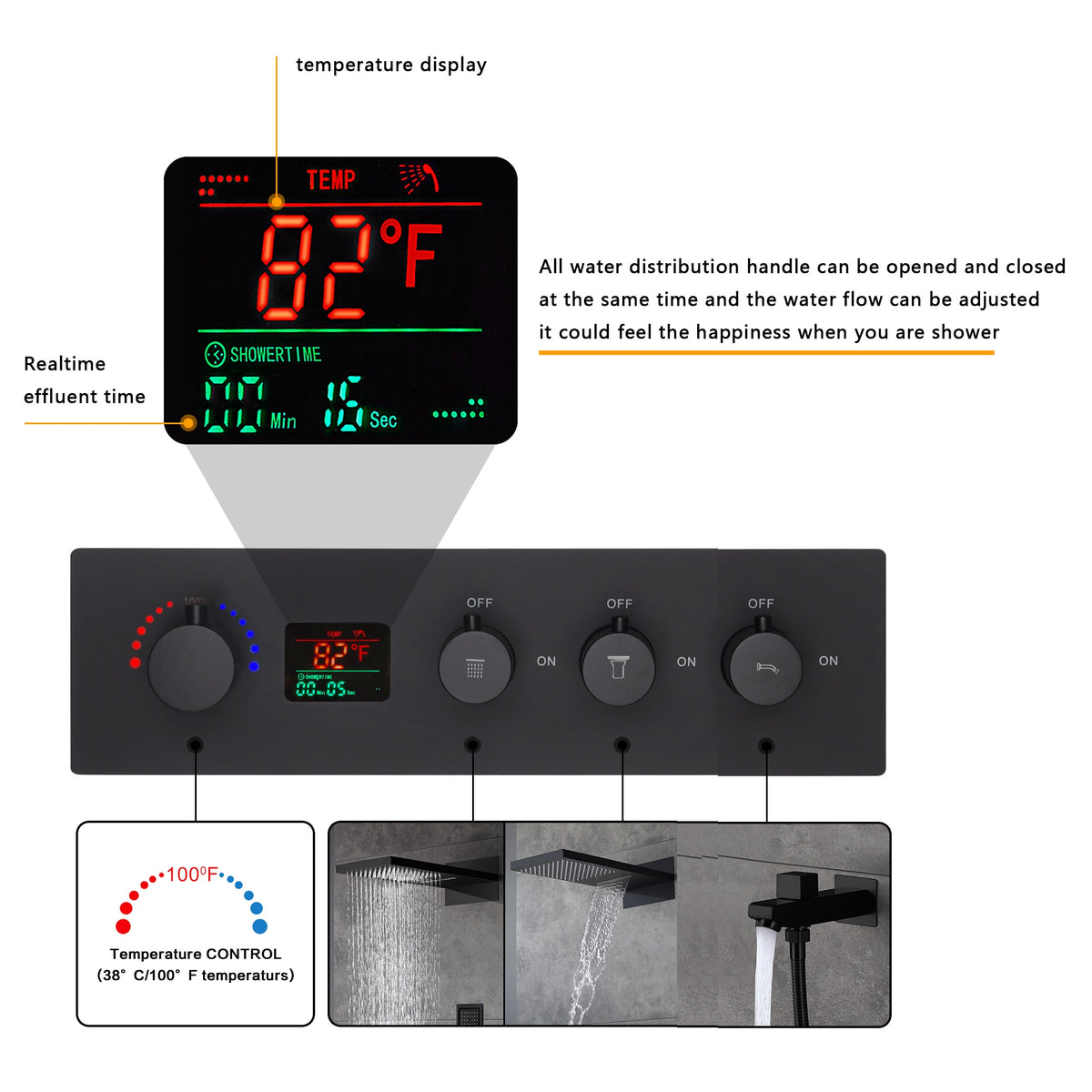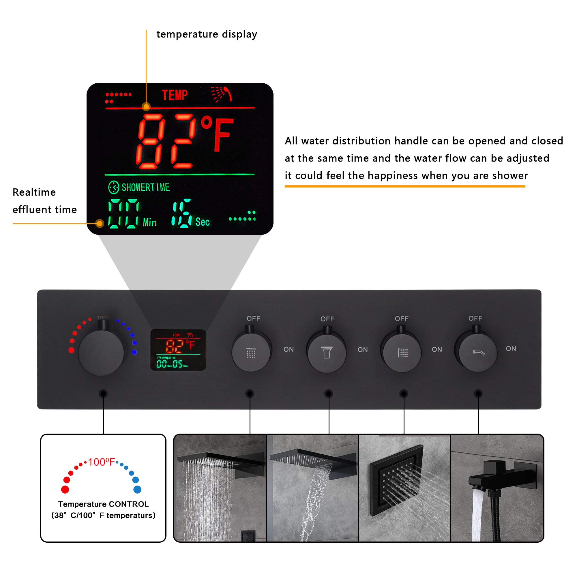 - Each function knob can control water flow and water pressure