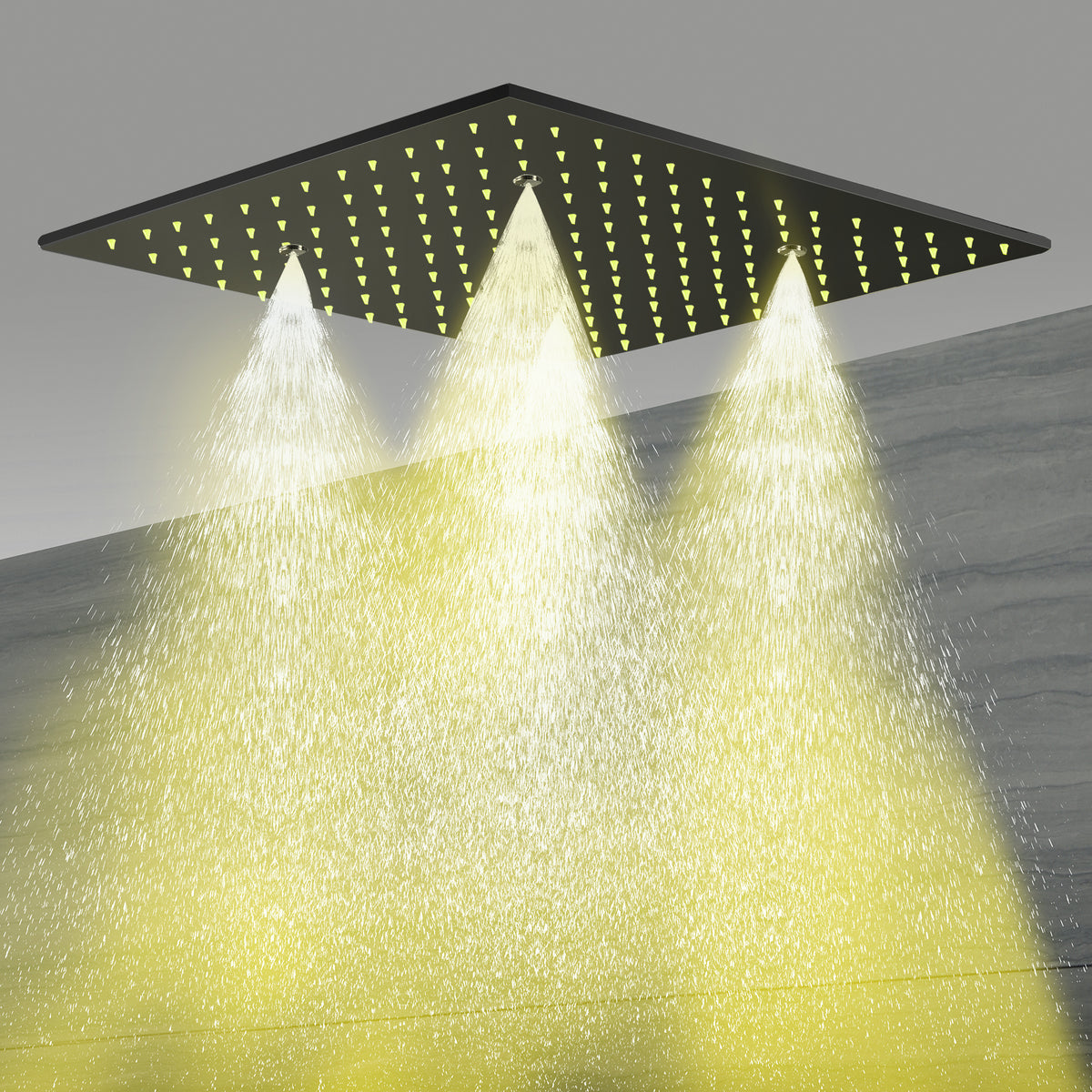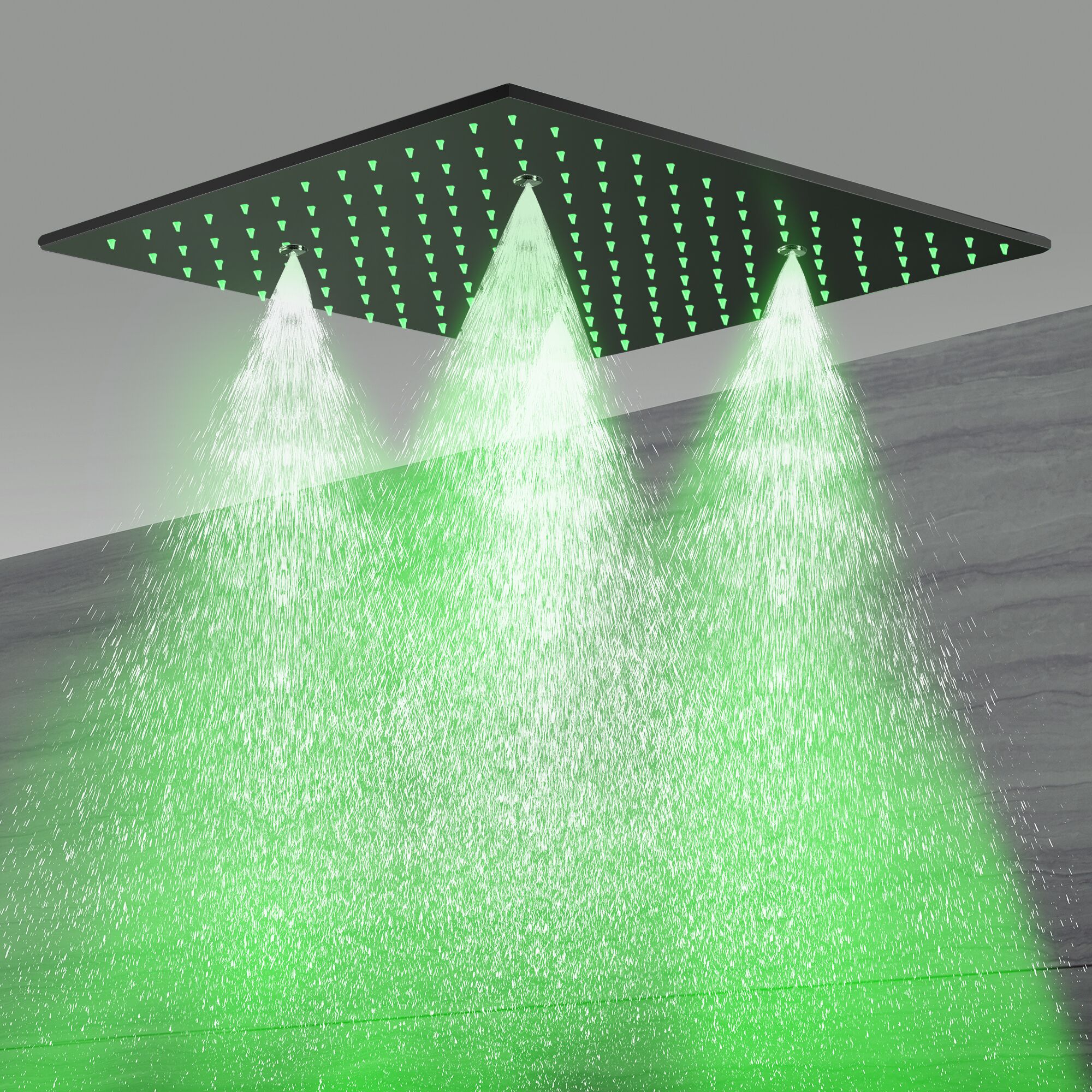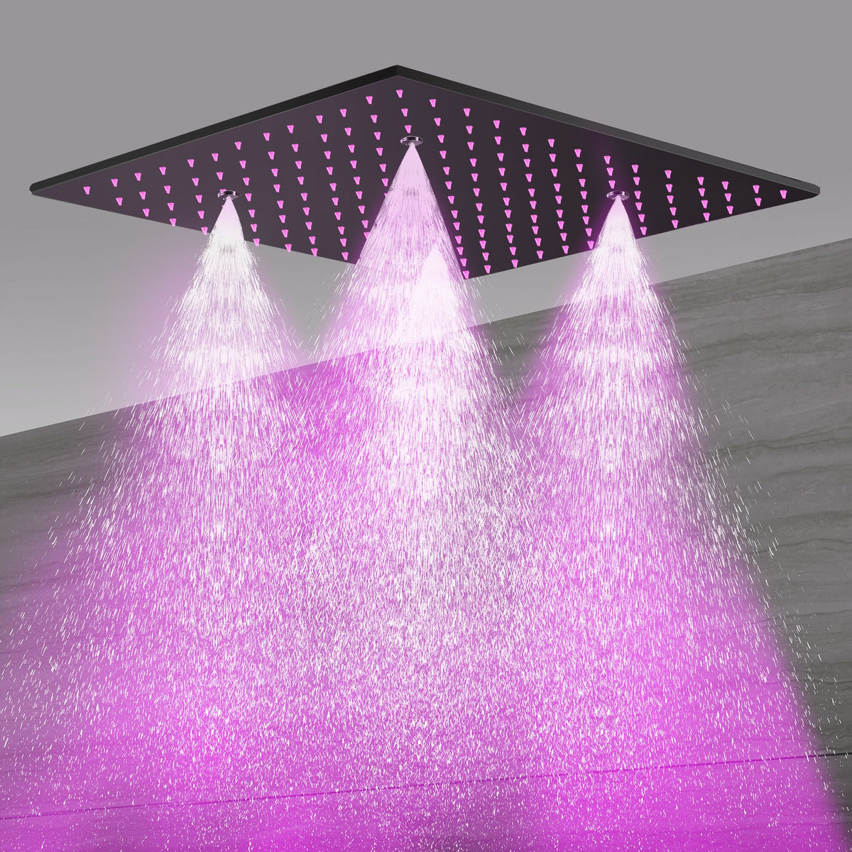 20'' Matt Black LED Shower Head Ceiling Mounted mist Rainfall Flushed In or Mounted
