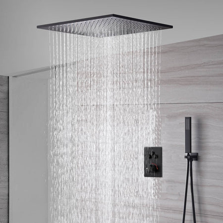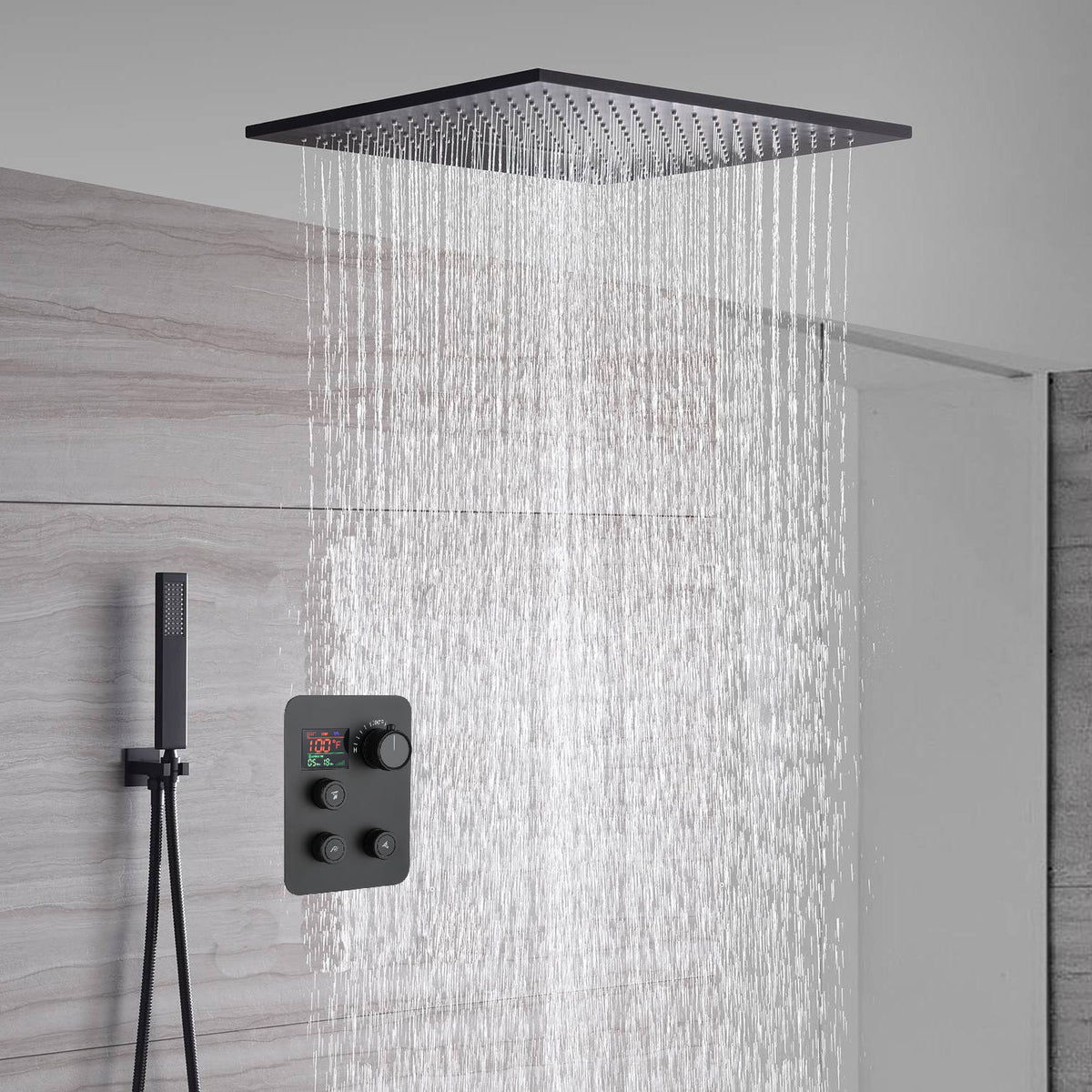 20inch matte black ceiling mount rainfall waterfall shower systems 3 way thermostatic valve with 6 body jets