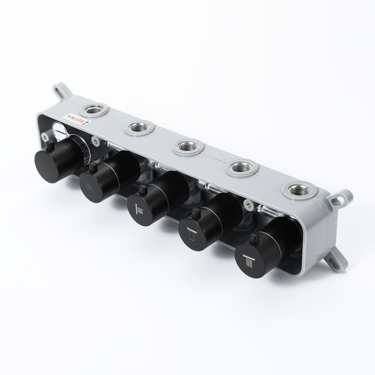4 way high water flow thermostatic valve thermostatic that each function work at the same time and separately, Water flow and water temperature and water pressure can be adjustable by knobs.