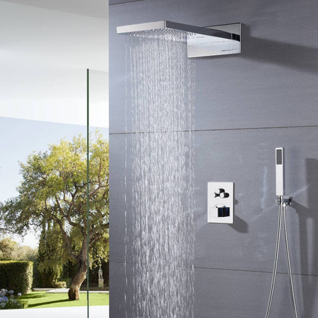 22'' Chrome 3 way thermostatic valve Rain & Waterfall Shower Faucet