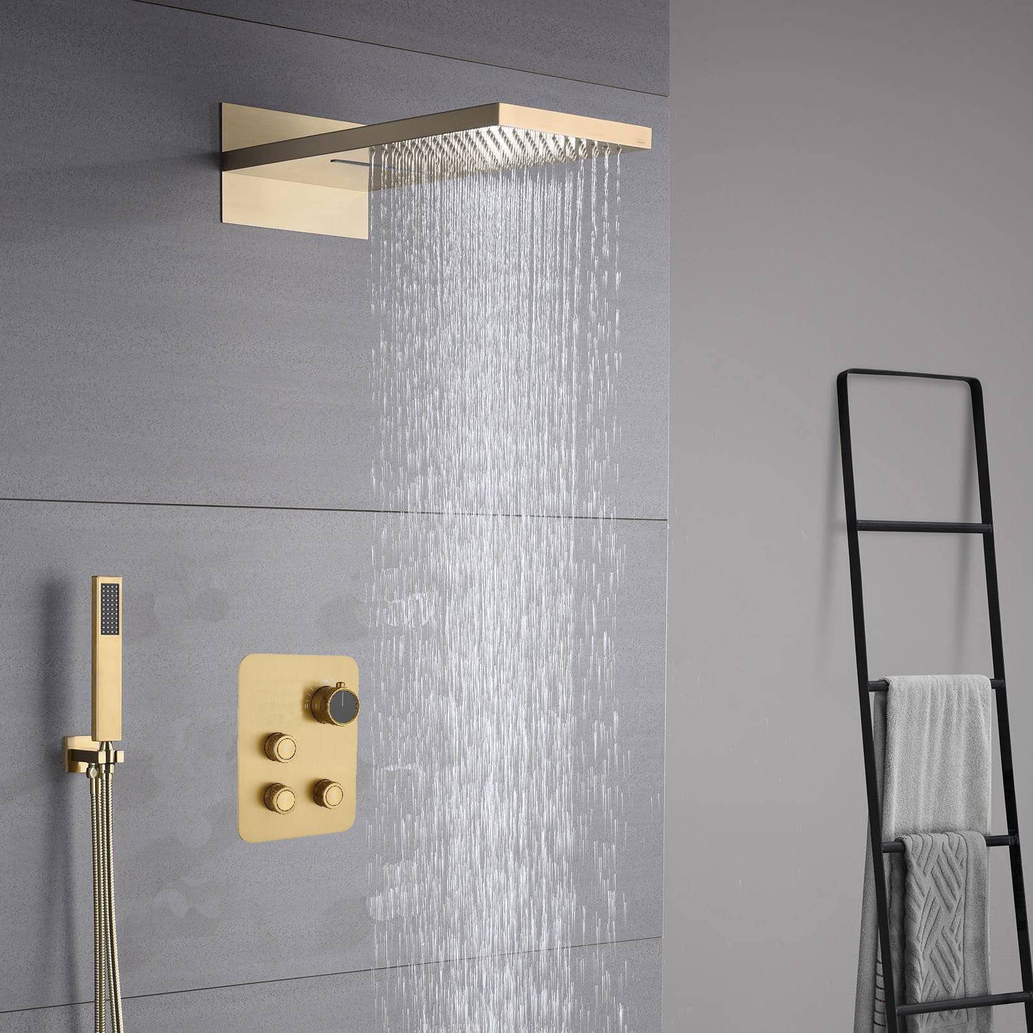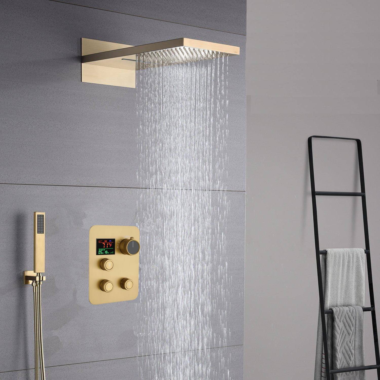 22inch Brushed gold 3 way Digital display Shower faucet system rainfall and waterfall