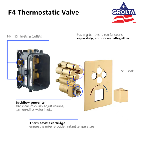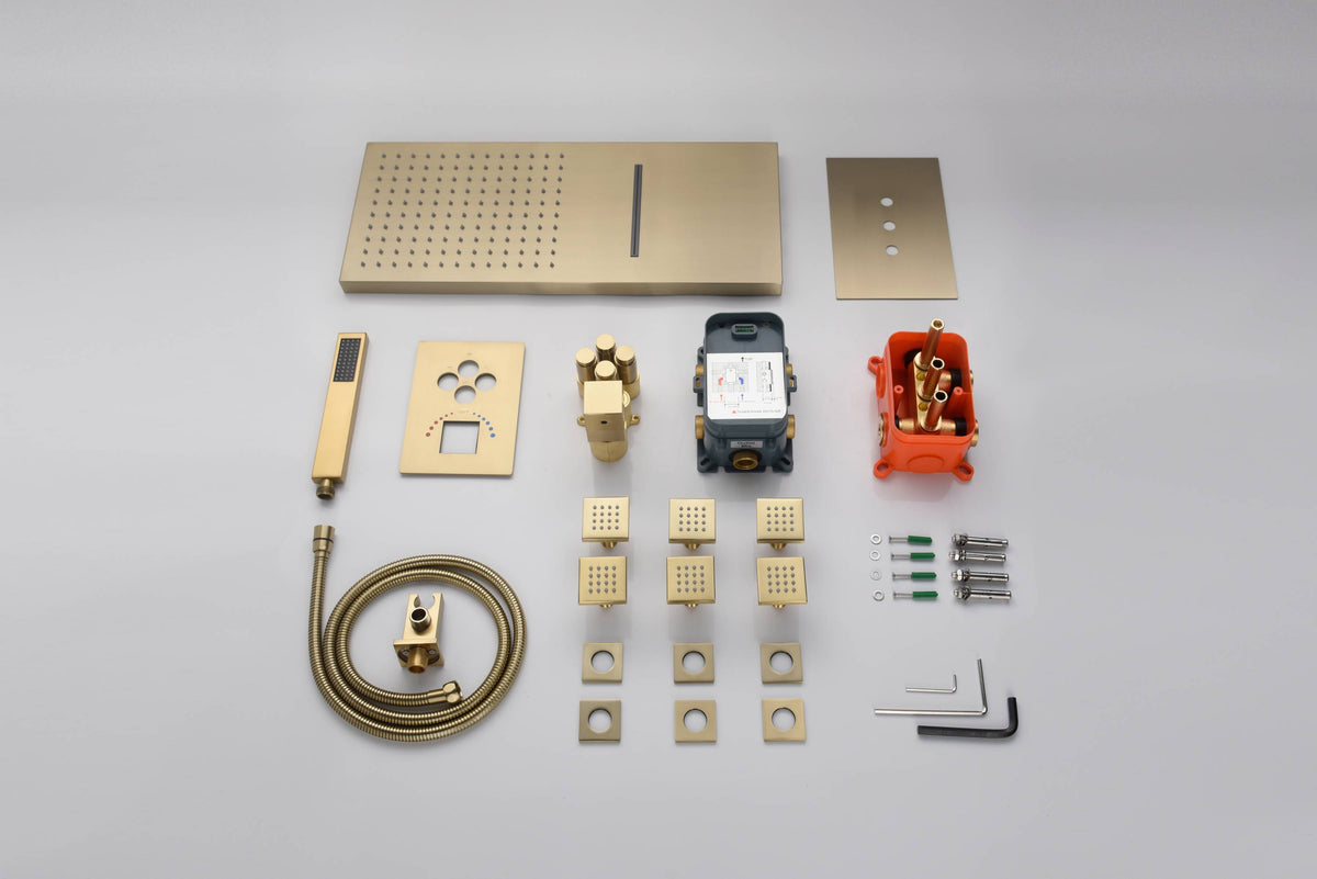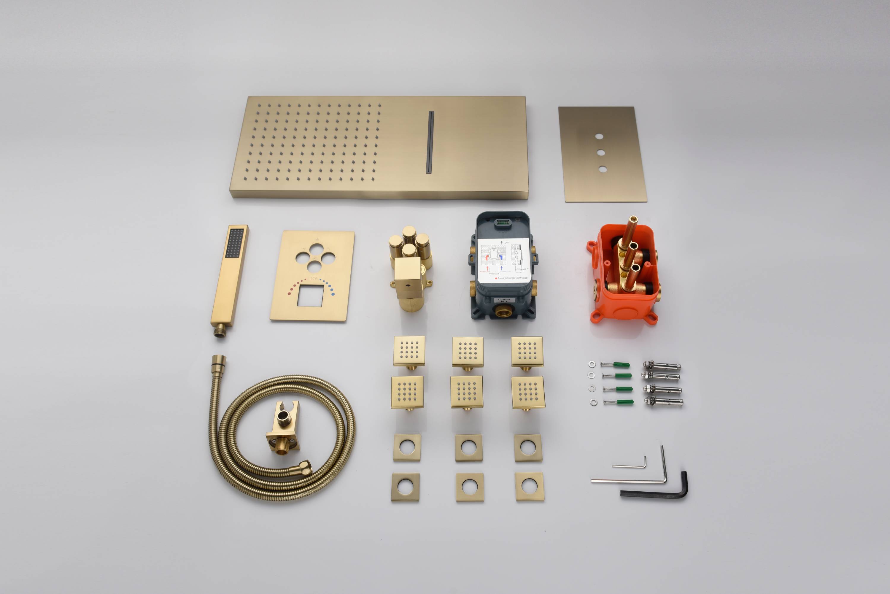 22inch Brushed gold 4 way Thermostatic Shower valve system that each function run all together and separately