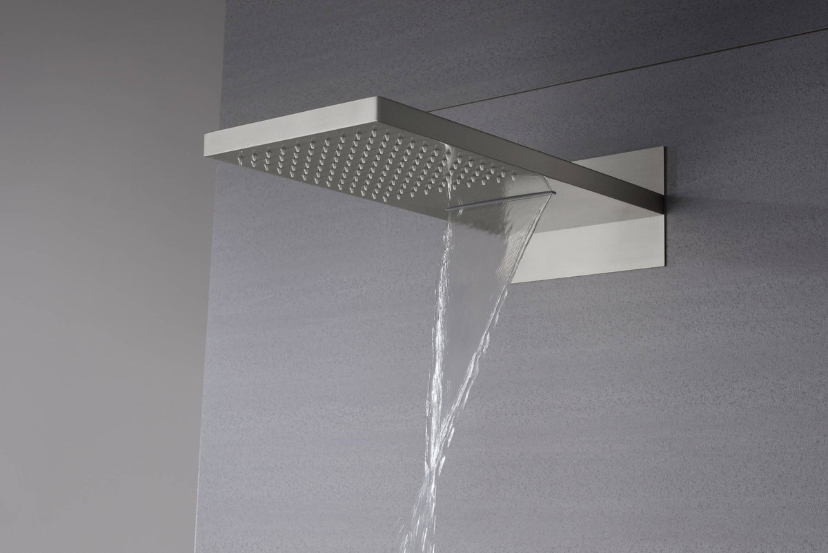22inch rainfall and waterfall Brushed Nickel 4 Way Thermostatic Shower Faucet with 4inch Body Jet