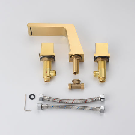 Polished Gold Widespread Bathroom Sink Faucet 2 Handles with pop up overflow brass drain