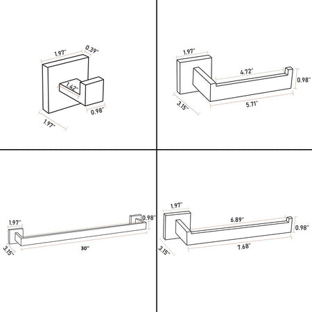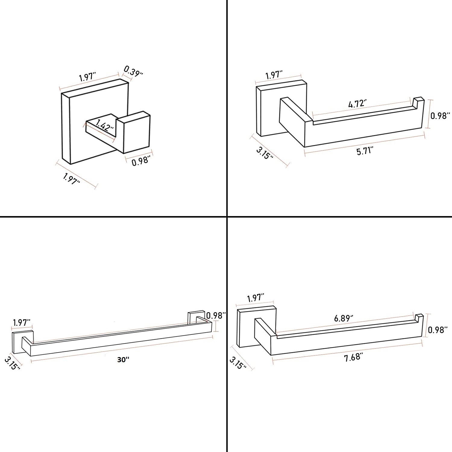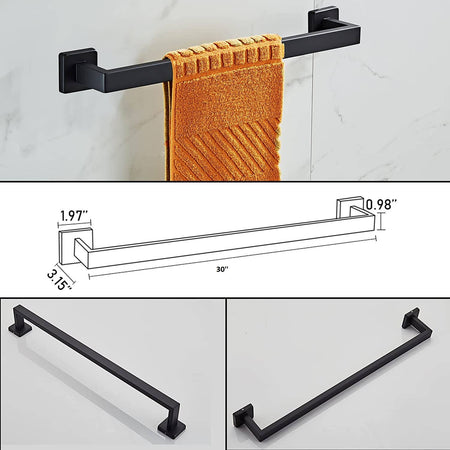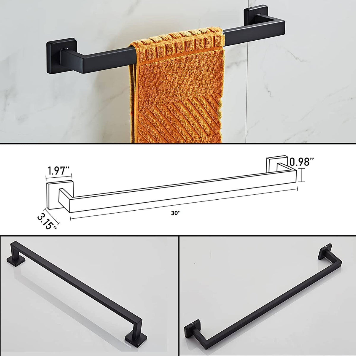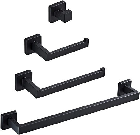 30 inch square 4-Piece Matte black Bathroom Hardware Set Towel Bar Towel Ring Toilet Paper Holder Robe Hook Tower Holder,Wall Mounted