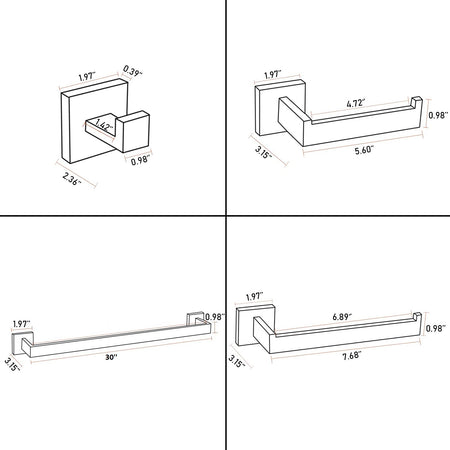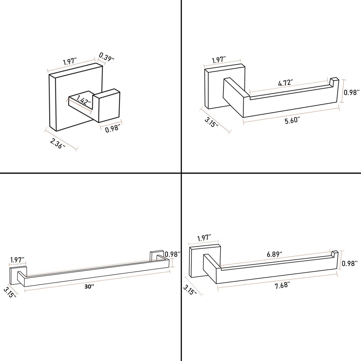 30 inch square 4-Piece Brushed nickel Bathroom Hardware Set Towel Bar Towel Ring Toilet Paper Holder Robe Hook Tower Holder,Wall Mounted