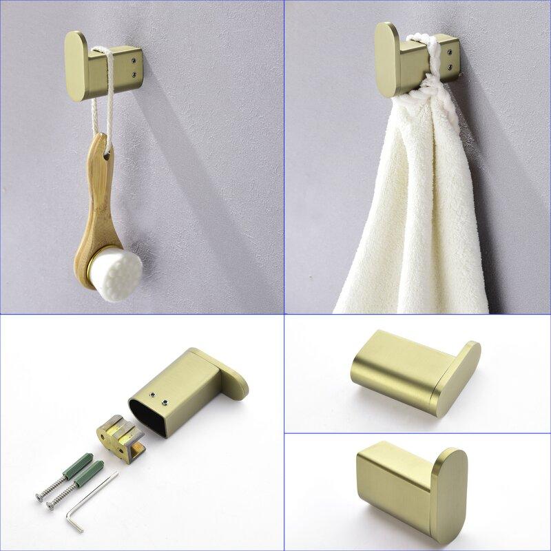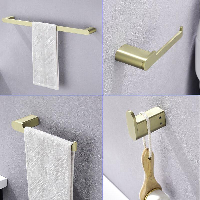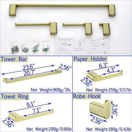 4-Piece Brass Brushed Gold Bathroom Hardware Set Towel Bar Towel Ring Toilet Paper Holder Robe Hook Tower Holder,Wall Mounted
