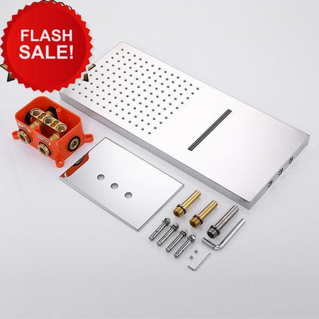 4 way thermostatic valve Chrome 22'' waterfall rainfall Thermostatic Shower system with flush 4inch body jets