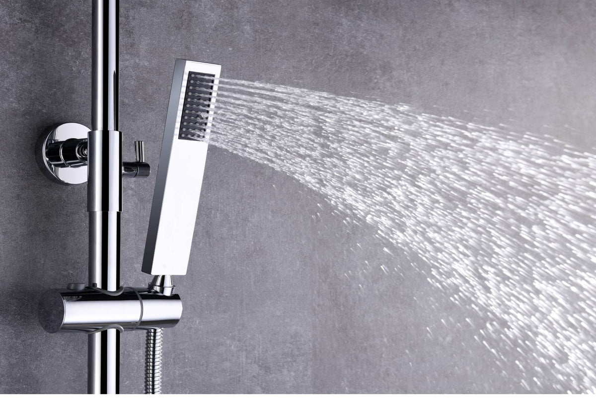 Grolta Exposed Shower Set offers a luxurious experience with each use. The rainfall showerhead provides spa-like luxury in your own home. Constructed of solid brass, this shower set is built to last. Premium features include thermostatic valve with waterflow power digital display and handled hand shower. Complete the look with other products from the Grolta Collection.