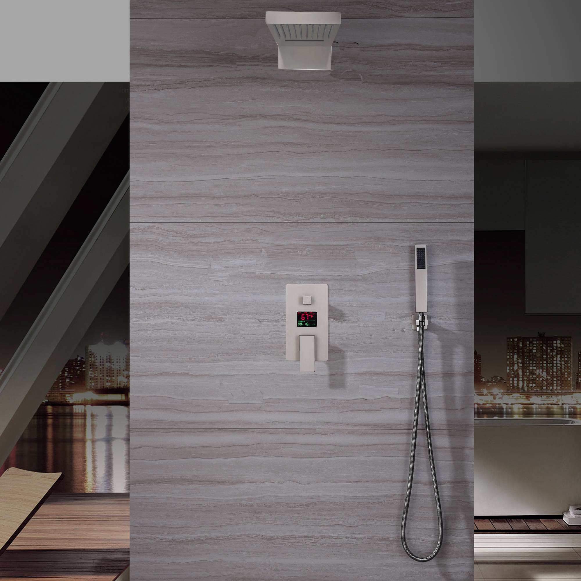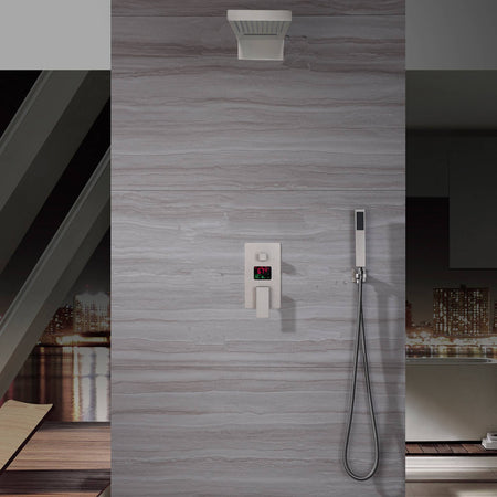 Brushed Nickel 22 Inch Rainfall Water Shower Head 3 Way Thermostatic Shower Faucet