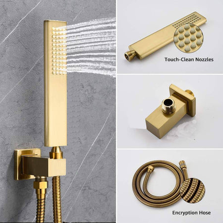 Brushed Gold brass handheld shower sprayer with hose and holder