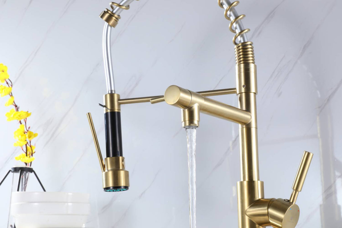 Brushed Gold High Arc brass Kitchen Sink Faucet Pull Down Spray with lock ring and deck plate