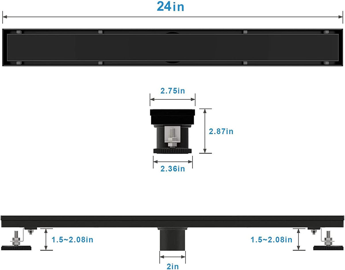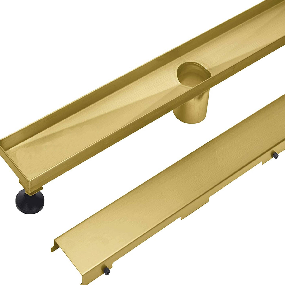 Brushed gold Linear shower drain stainless steel material 24 inch with tile insert 2-in-1 cover with hair strainer and adjustment feet