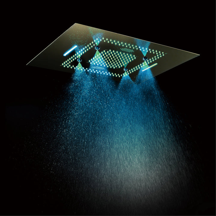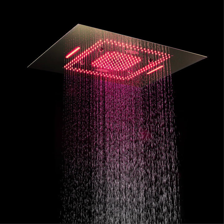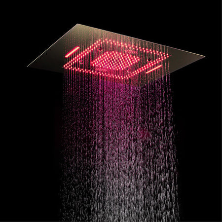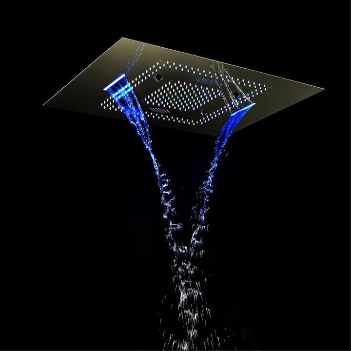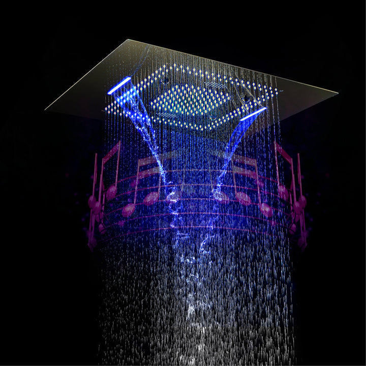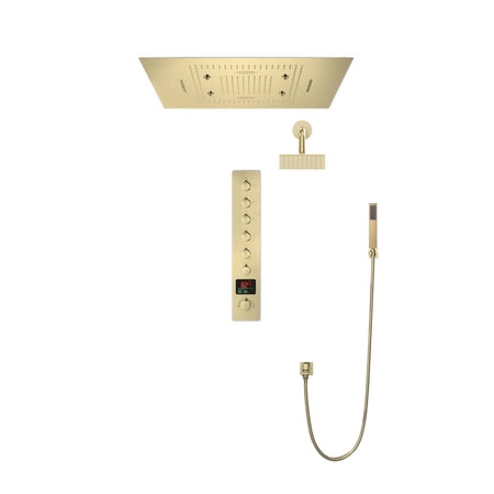 Brushed Gold Music LED Flushed in 31inch shower head 6 way thermostatic valve that each function run all together and separately
