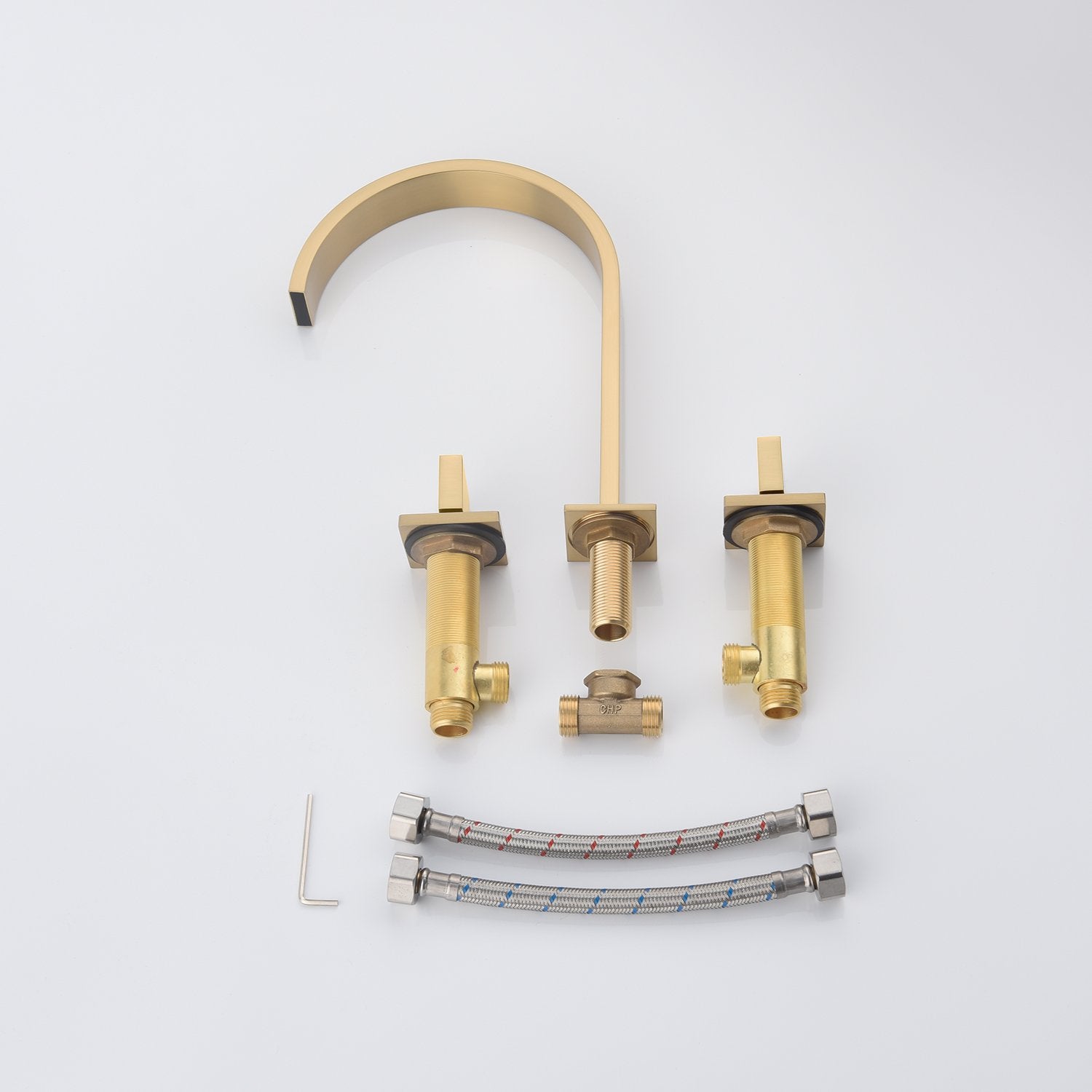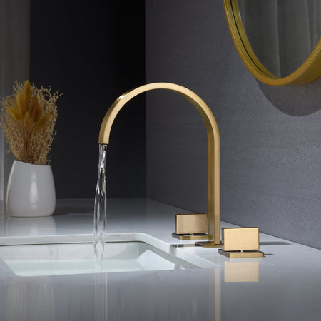 Brushed Gold Widespread Bathroom Sink Faucet 2 Handles 3 Holes bathroom sink faucet Deck Mount