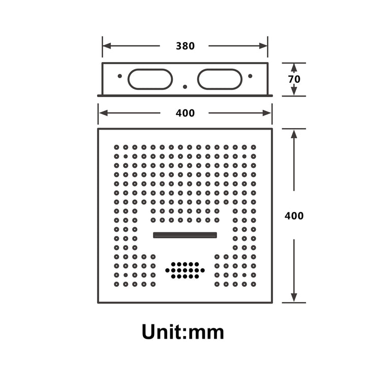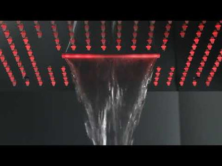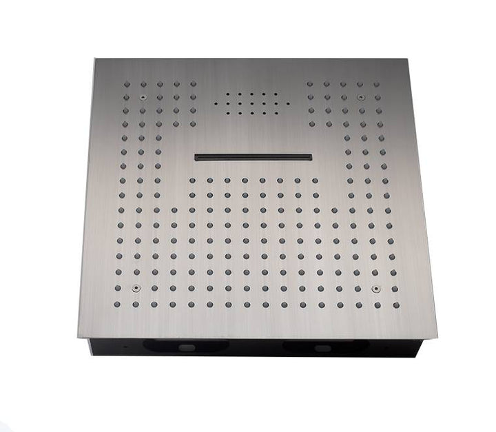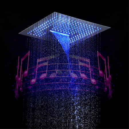 Brushed nickel 16 inch flushed mount rainfall waterfall 64 LED light bluetooth music shower head