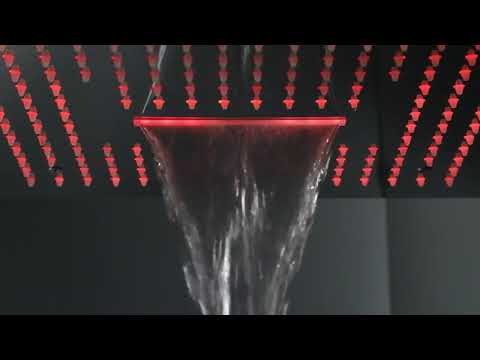 brushed nickel 16 inch flushed mount rainfall waterfall mist 64 LED light bluetooth music shower head