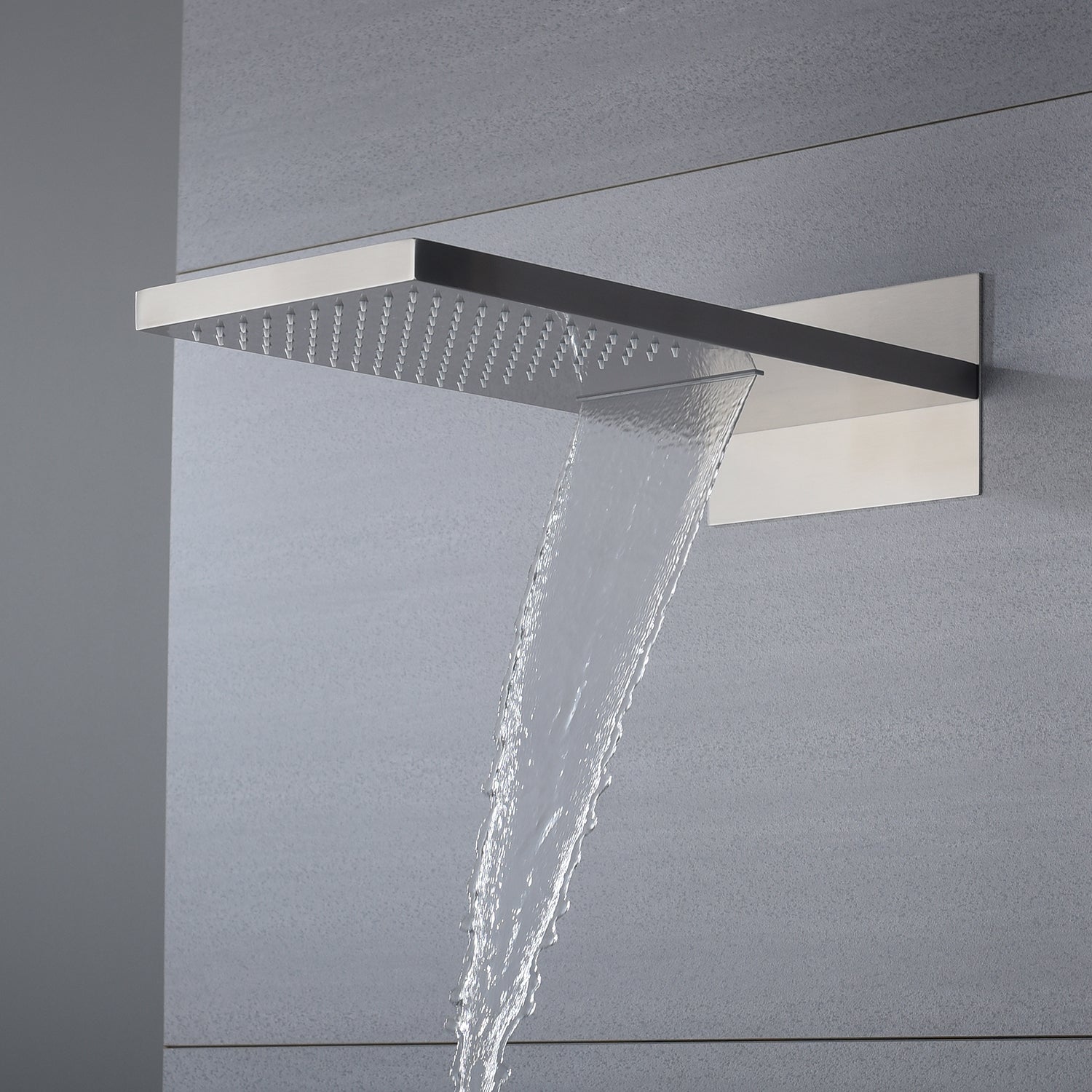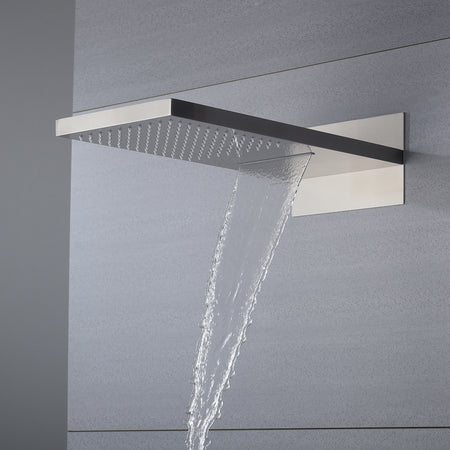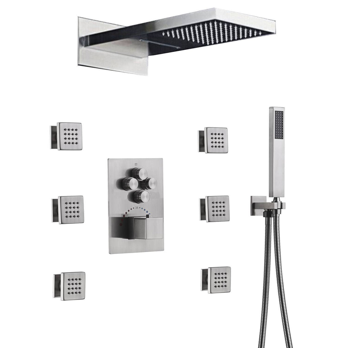 22'' Brushed Nickel 4 Way Thermostatic Shower Faucet Waterfall & Rain Massage Body Jet Spray