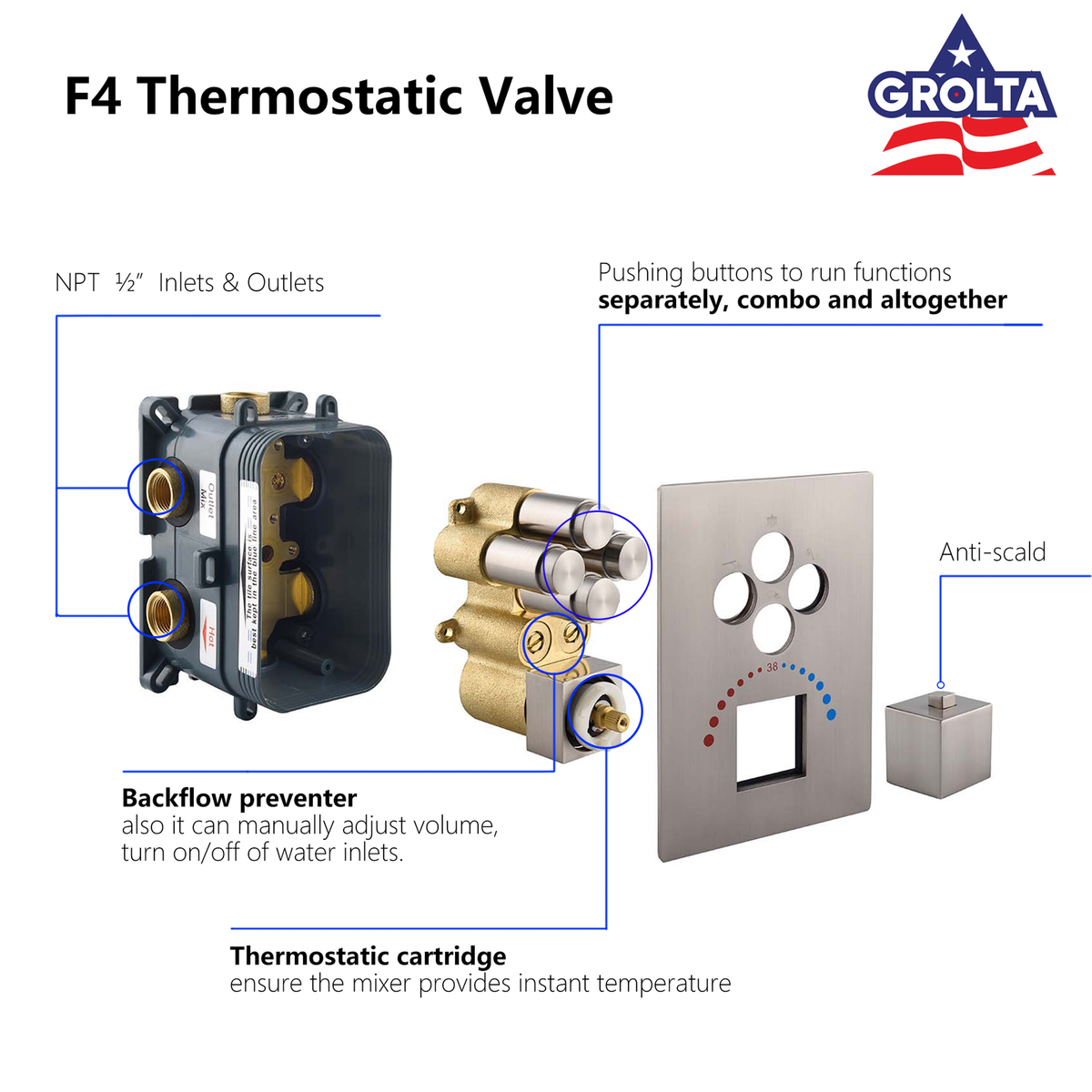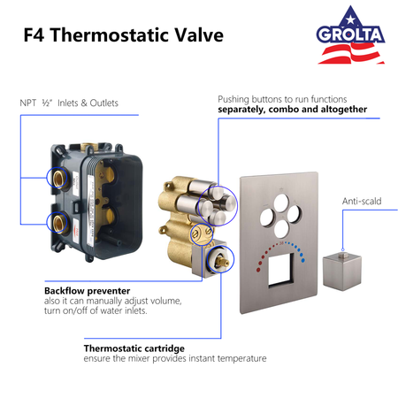 4 way brass thermostatic valve : each function can run separately and at the same time.