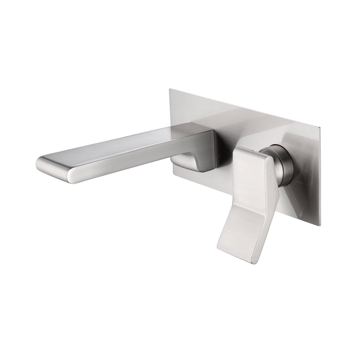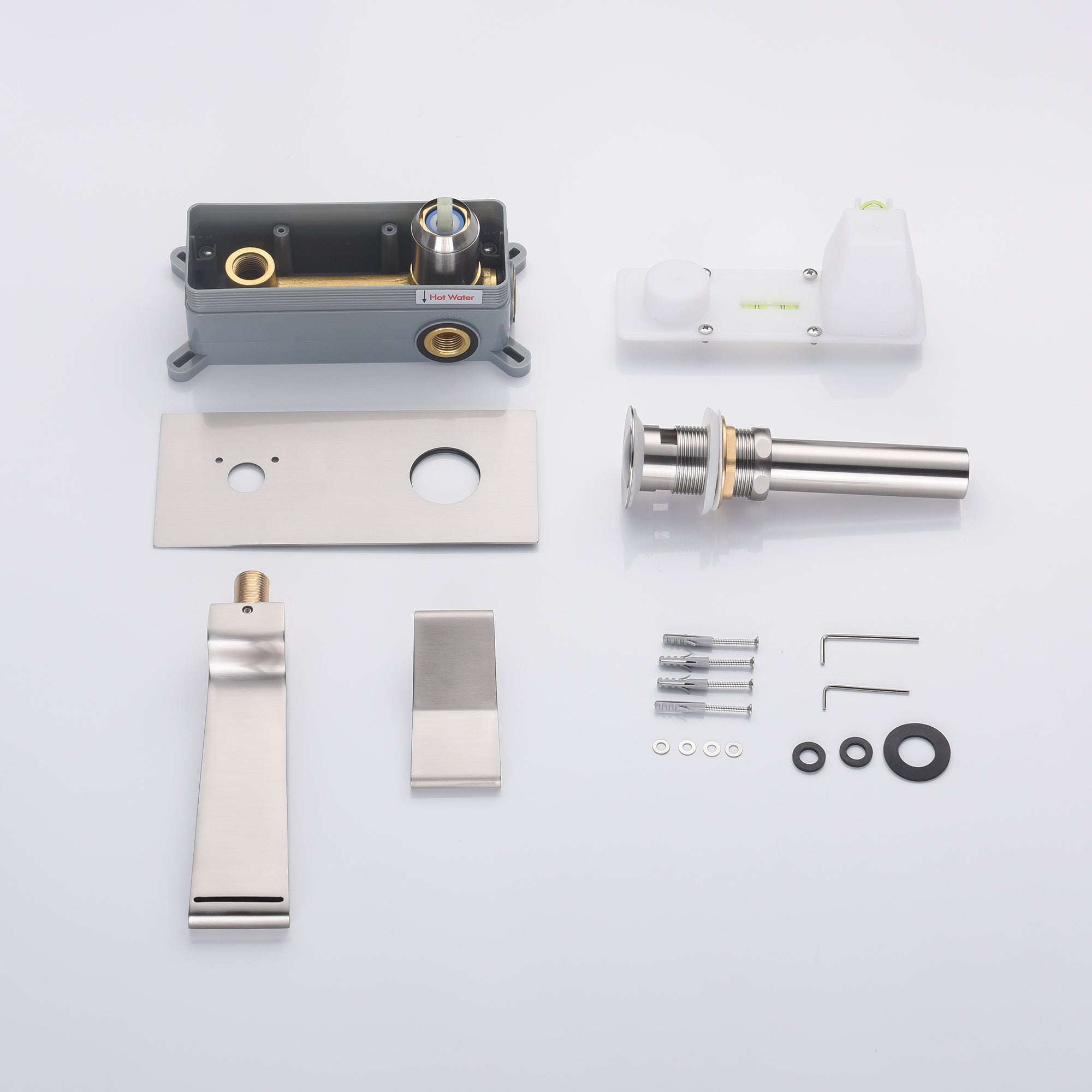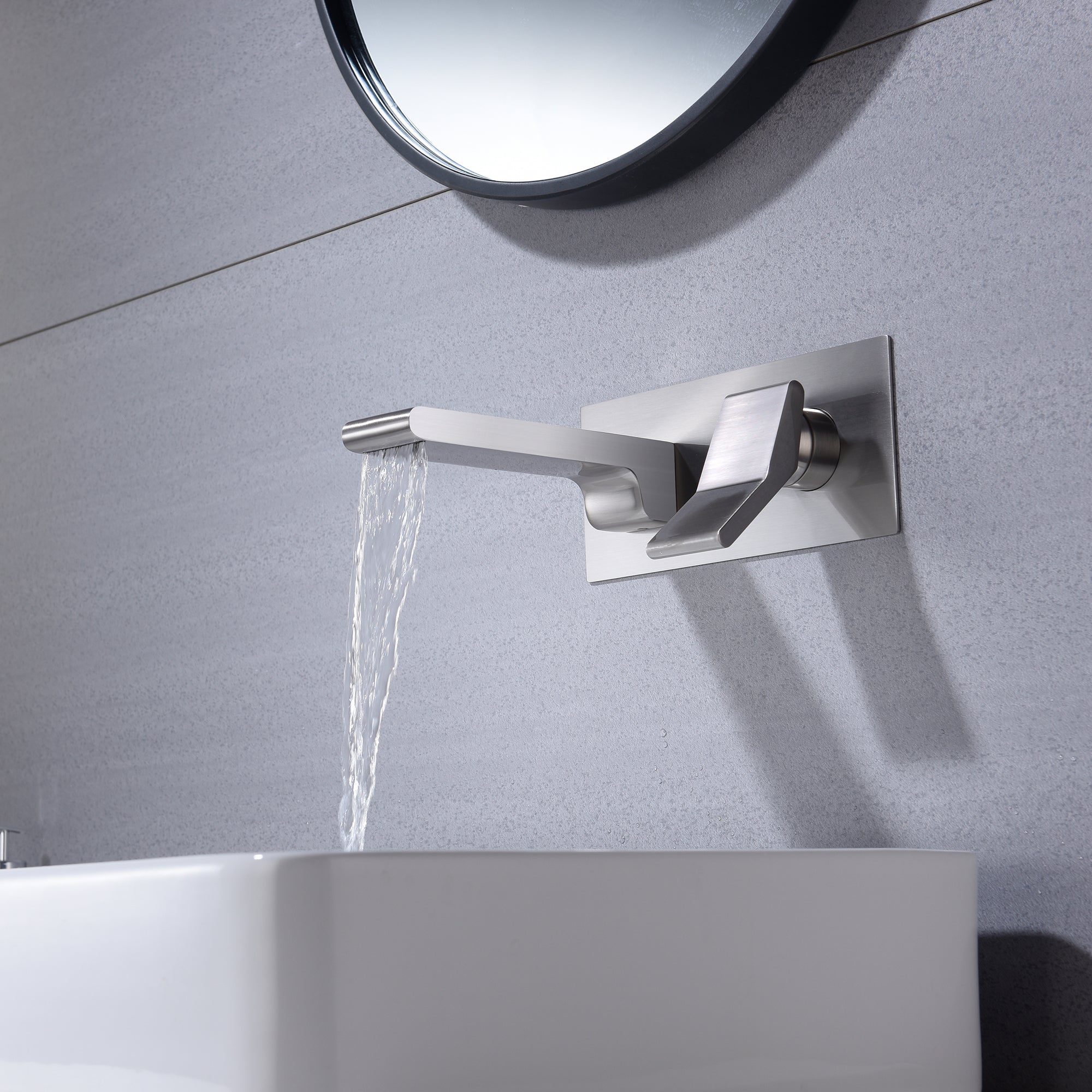 Brushed nickel waterfall wall mount Single handle bathroom sink faucet with overflow brass pop up drain