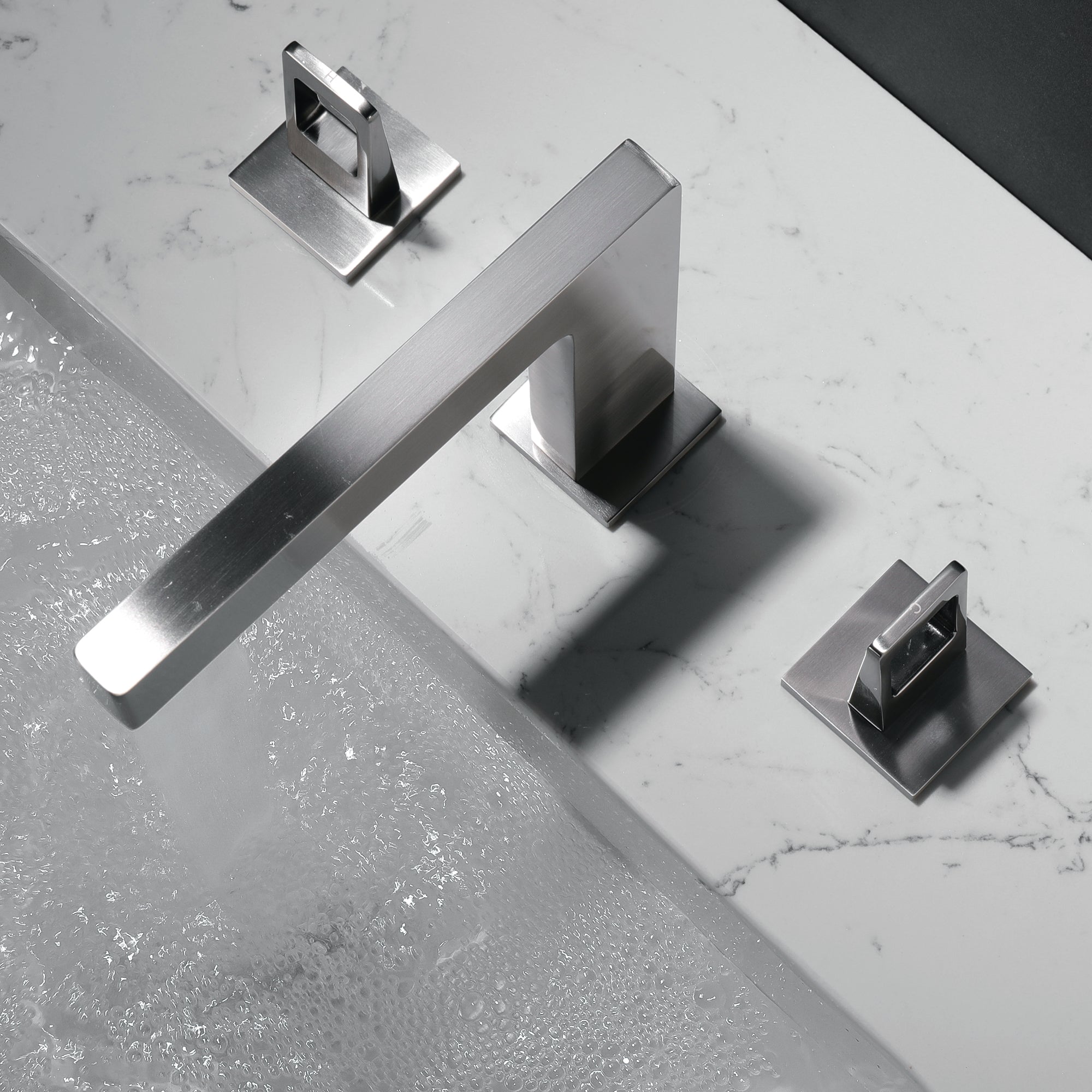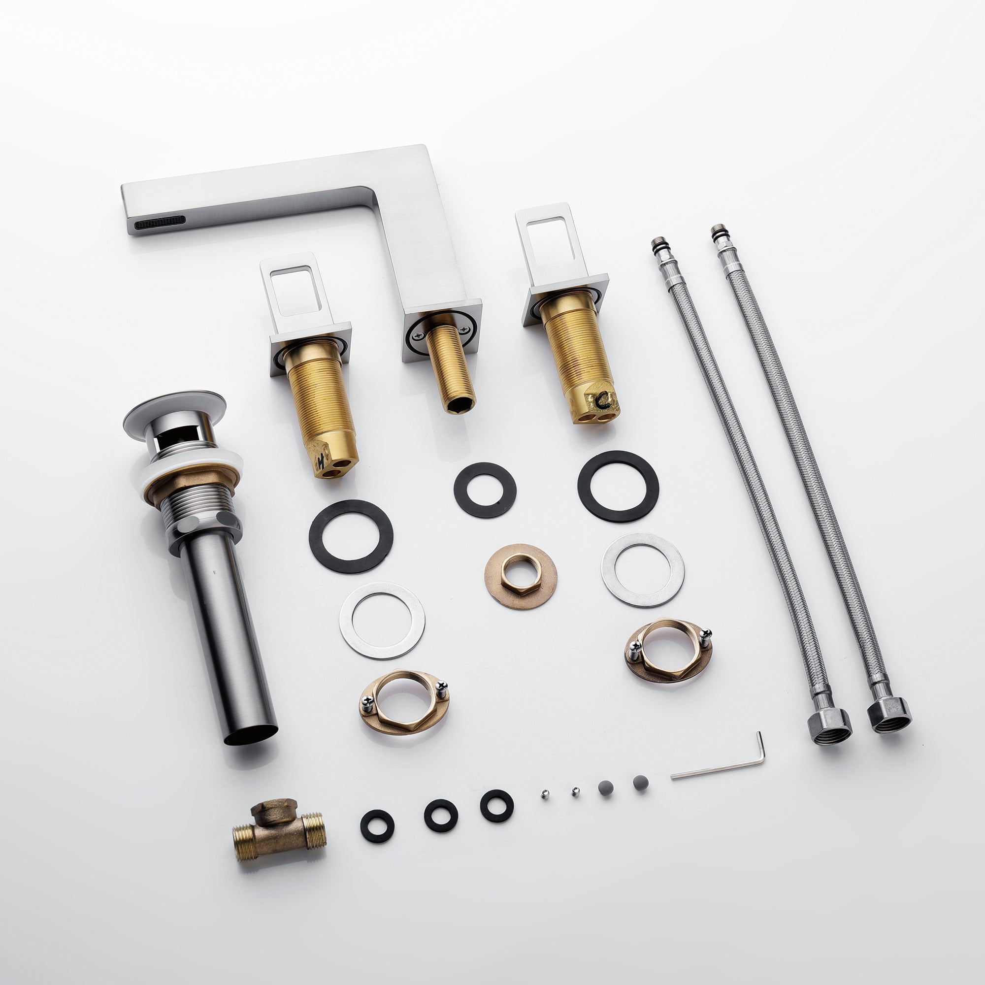 Brushed nickel 3 holes two handles spread brass material bathroom basin faucets with pop up drain