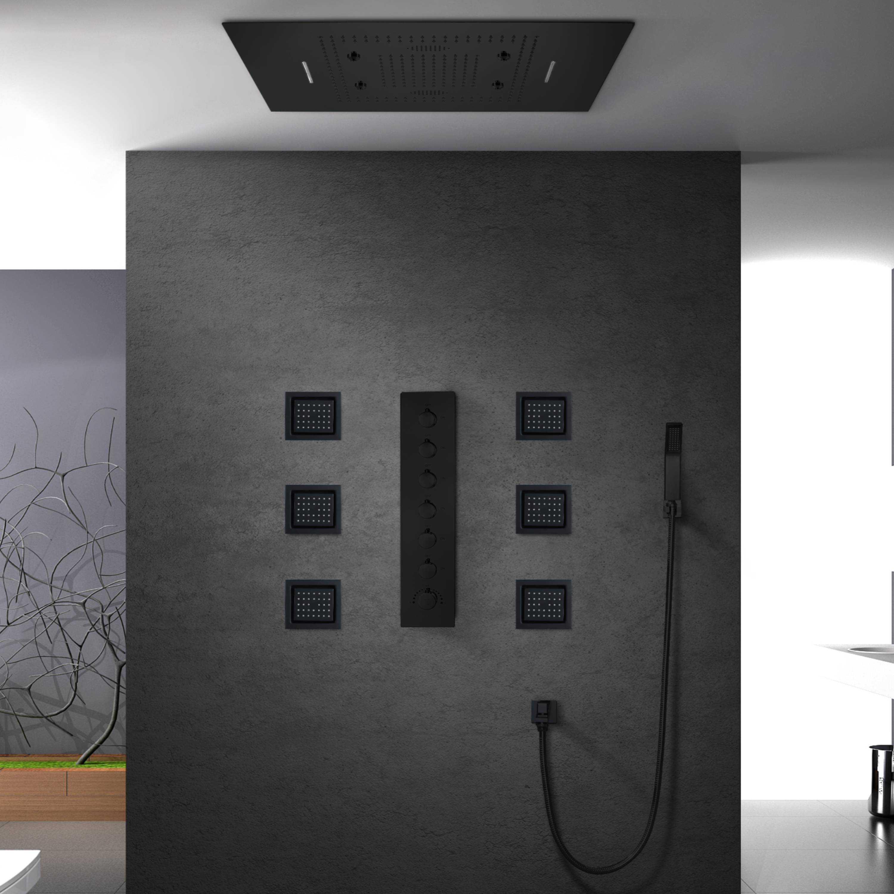 Matte Black Flush in 31'' Rainfall Shower Head Faucet 6 Function Thermostatic Mixer Valve with 6 pcs (4 x 4 inch) body jets