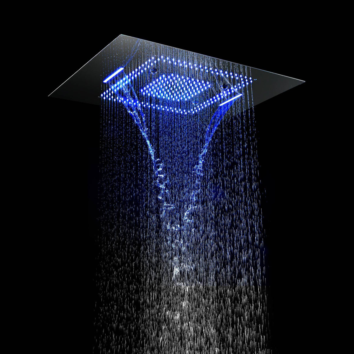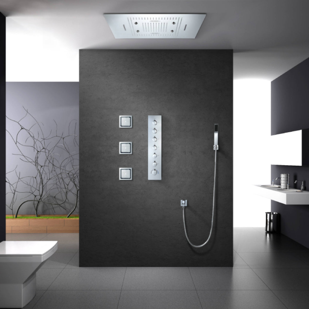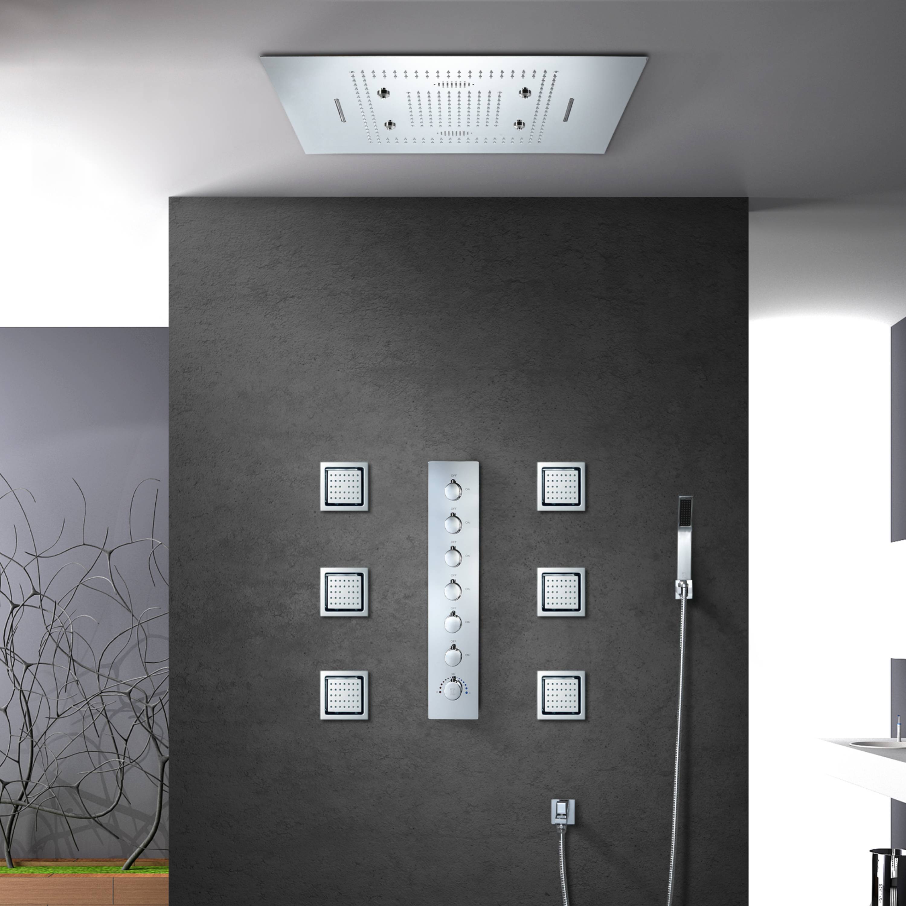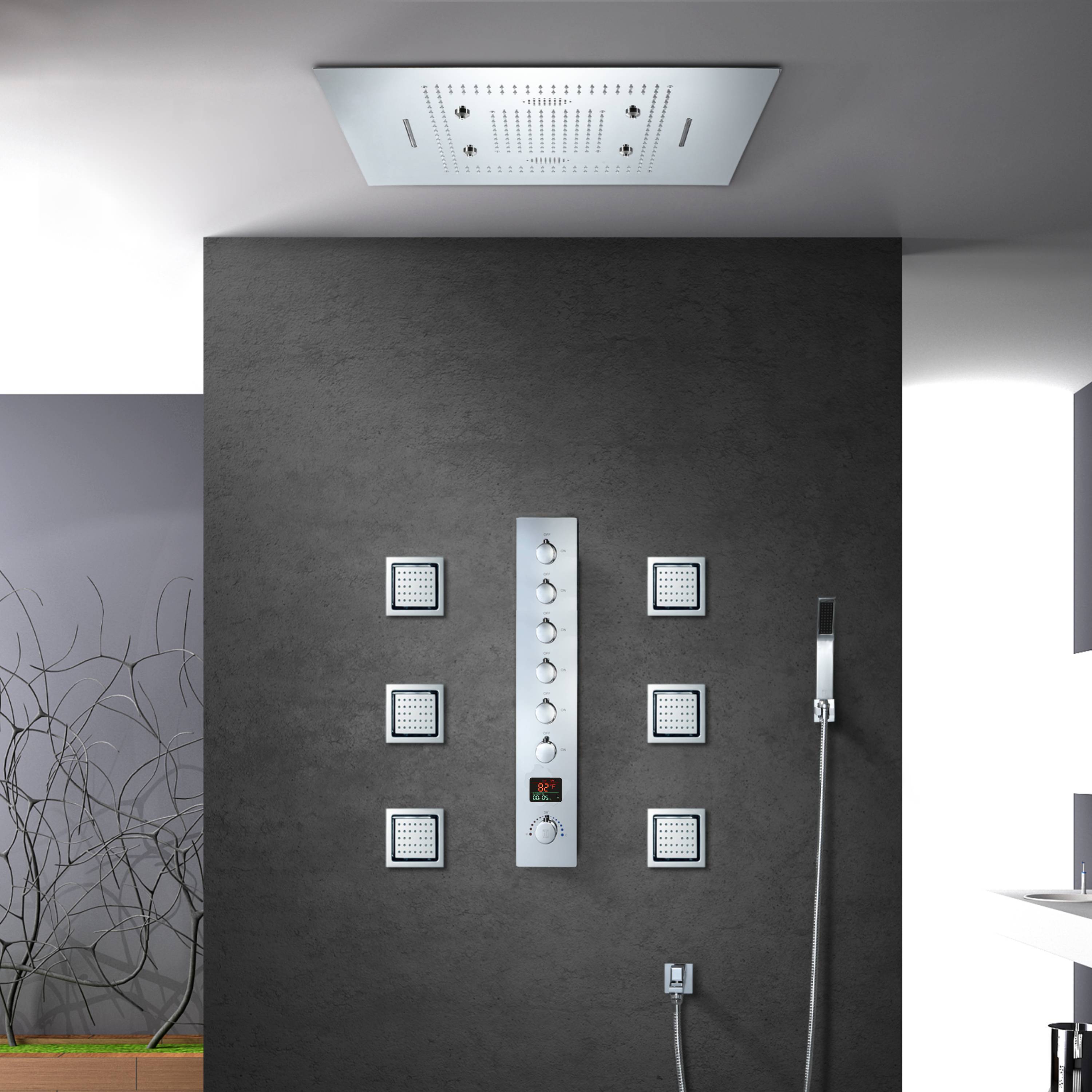Chrome Flush in 31'' x 23'' Rainfall Shower Head Faucet 6 Function Digital display Thermostatic Mixer Valve with 6 pcs (4 x 4 inch) body jets