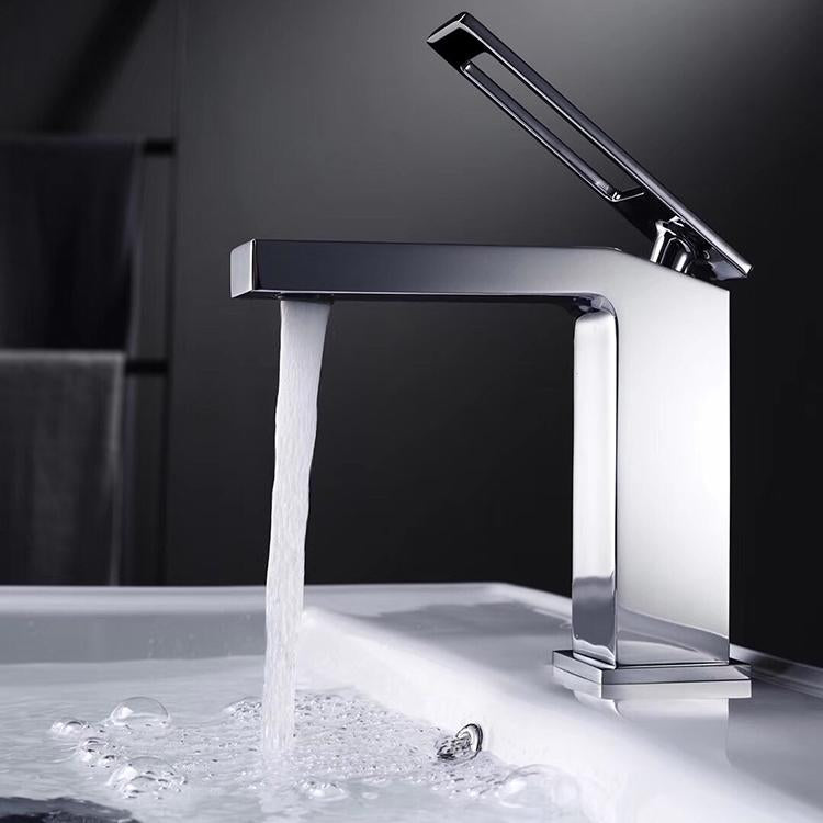 Chrome Single handle bathroom basin faucet with pop up overflow brass drain