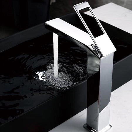 Chrome single handle bathroom basin faucet with pop up overflow brass drain
