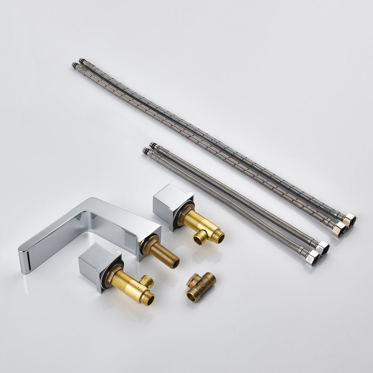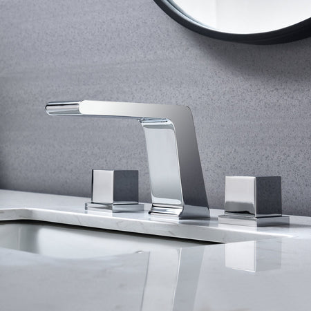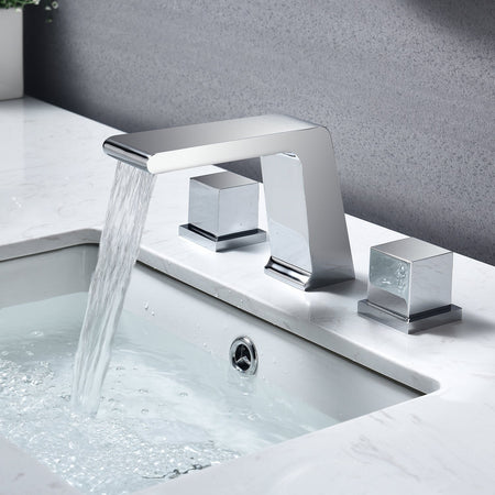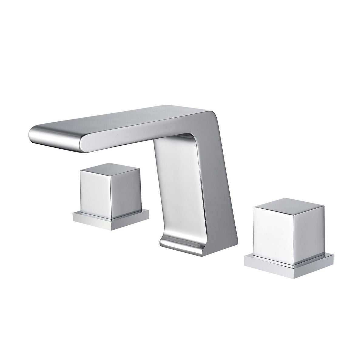 Chrome two handles 3 holes bathroom sink faucet with pop up overflow brass drain