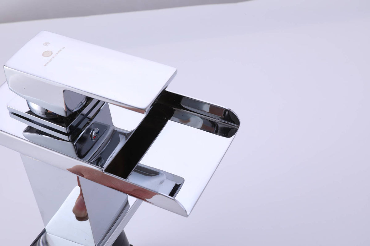 Chrome waterfall 3 LED light single handle brass bathroom faucet with pop up brass drain