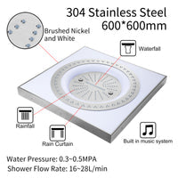 - 1 x 24 inch rainfall shower head (304 stainless steel, without music, with 16 LED light)
