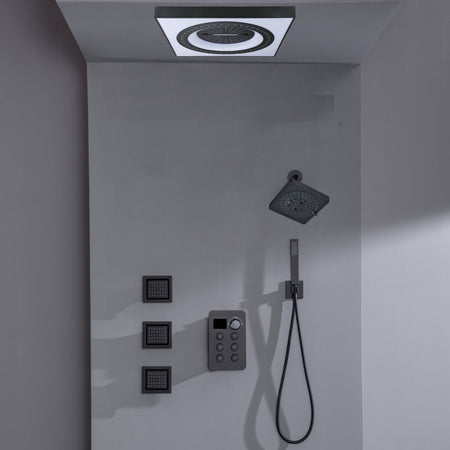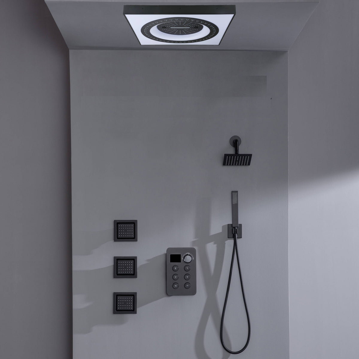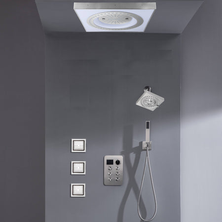 Brushed Gold or Brushed Nickel or Matte Black Flush mount 24 inch Shower Head 6 way Digital Display Shower Faucet with 6'' regular head and body jets