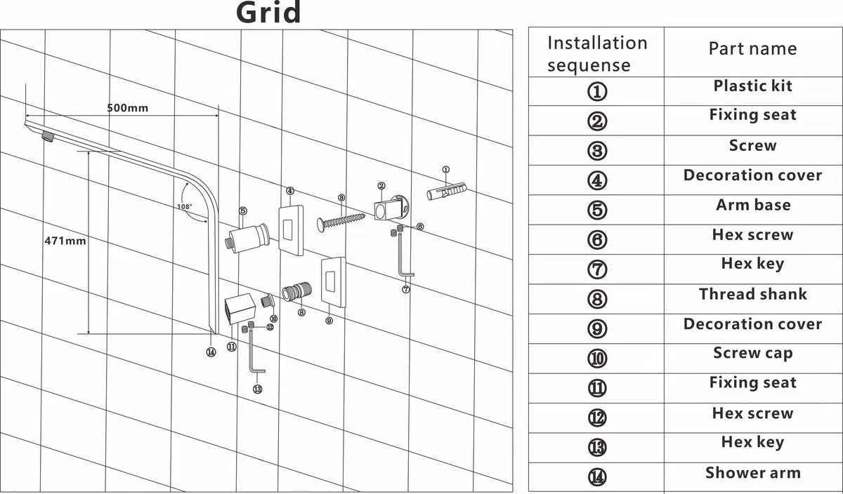 - Wall shower arm: stainless material, 20 inch length, with NPT ½ inch male thread and G ½ inch male thread and flange